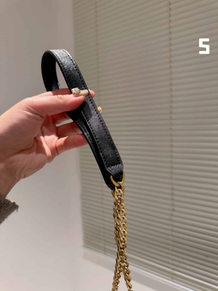 Saint Laurent Vinyle Round Camera Bag In Chevron Quilted Grain De Poudre Embossed Leather / Black 18Cm