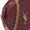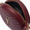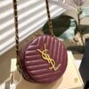 Saint Laurent Vinyle Round Camera Bag In Chevron Quilted Grain De Poudre Embossed Leather Red 18cm
