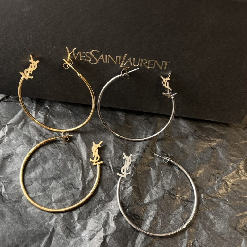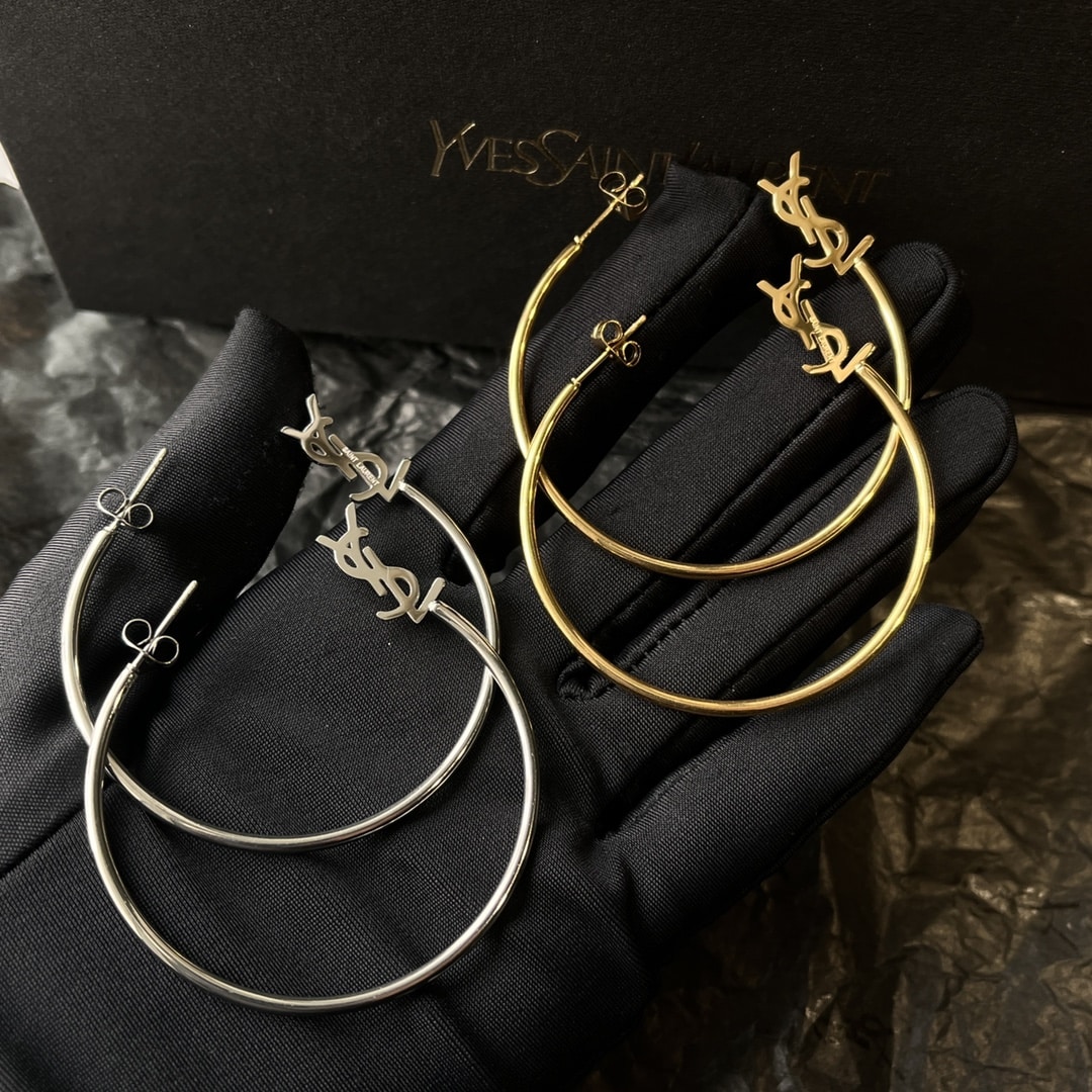 Saint Laurent Ysl Logo Big Round Earrings Gold