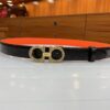 Salvatore Ferragamo Gancini Leather Belt With Gold Metal Pearls Buckle 2.5Cm