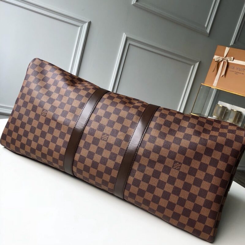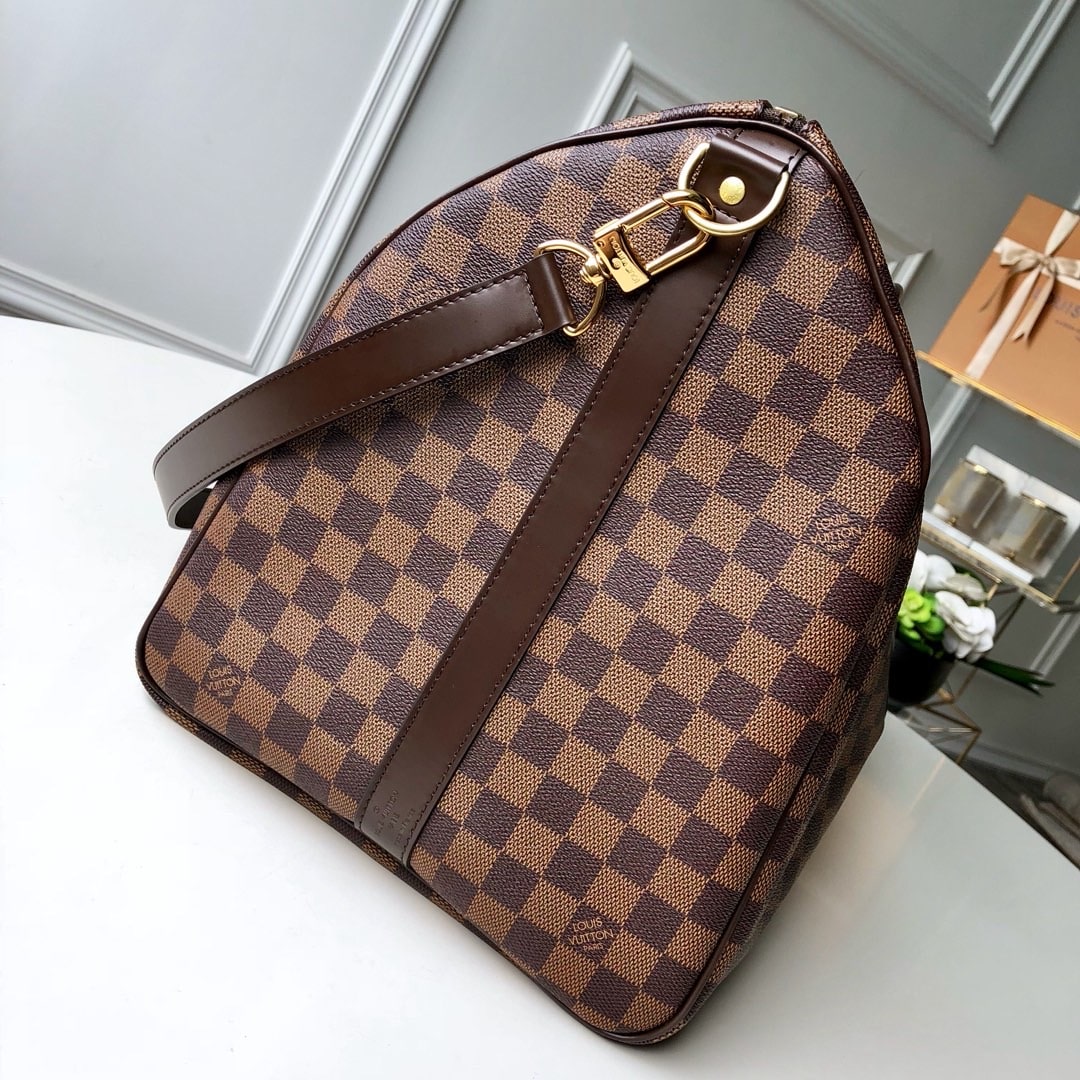 SUMMER SET: LOUIS VUITTON KEEPALL BANDOULIÈRE 55 DAMIER EBENE & ZIPPY WALLET DAMIER EBENE