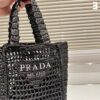PRADA NATURAL RAFFIA LOGO TOTE BLACK 1BG444 2A2T F0002 18CM
