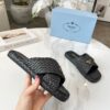 PRADA RAFFIA CRISSCROSS SLIDES BLACK 1XX750 027 F0002 F 020