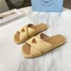 PRADA RAFFIA CRISSCROSS SLIDES NATURAL