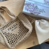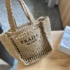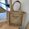 PRADA RAFFIA GRASS SMALL CROCHET TOTE BAG NATURAL 22CM 1BG444 2A2T F0018 V OOO