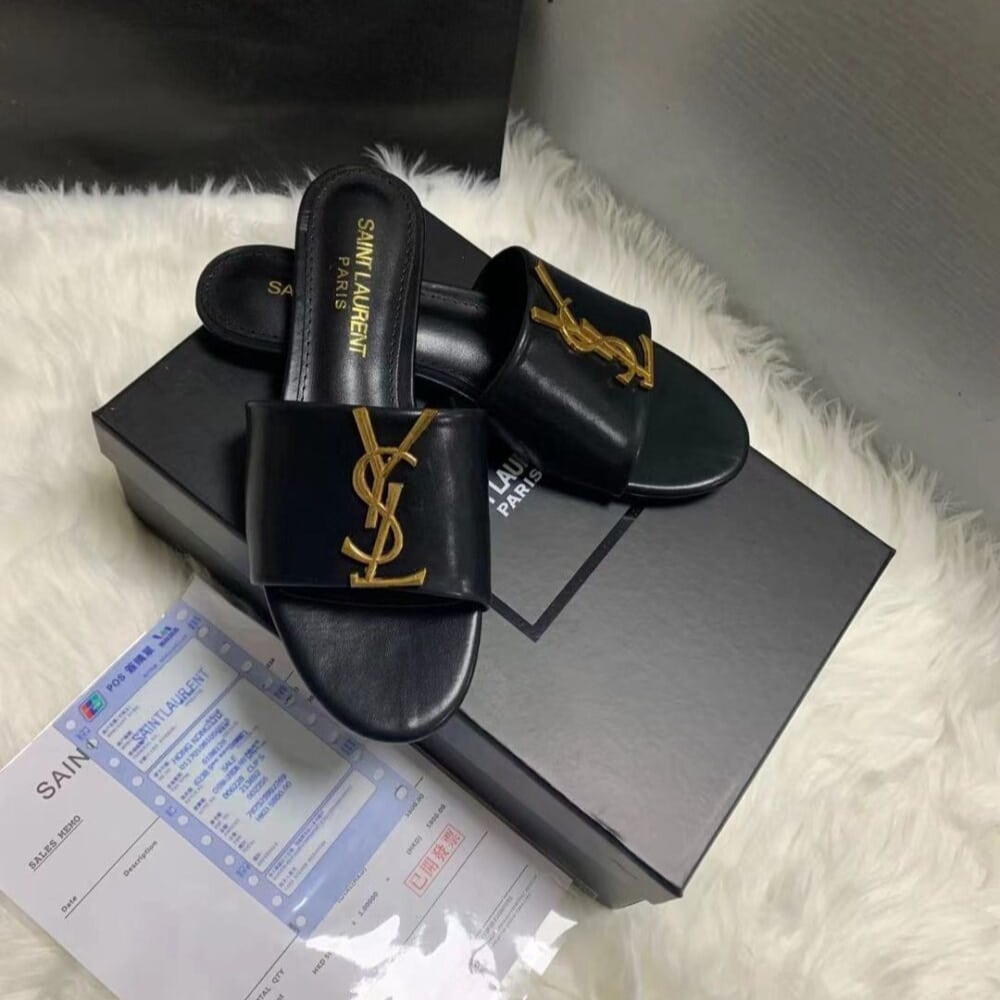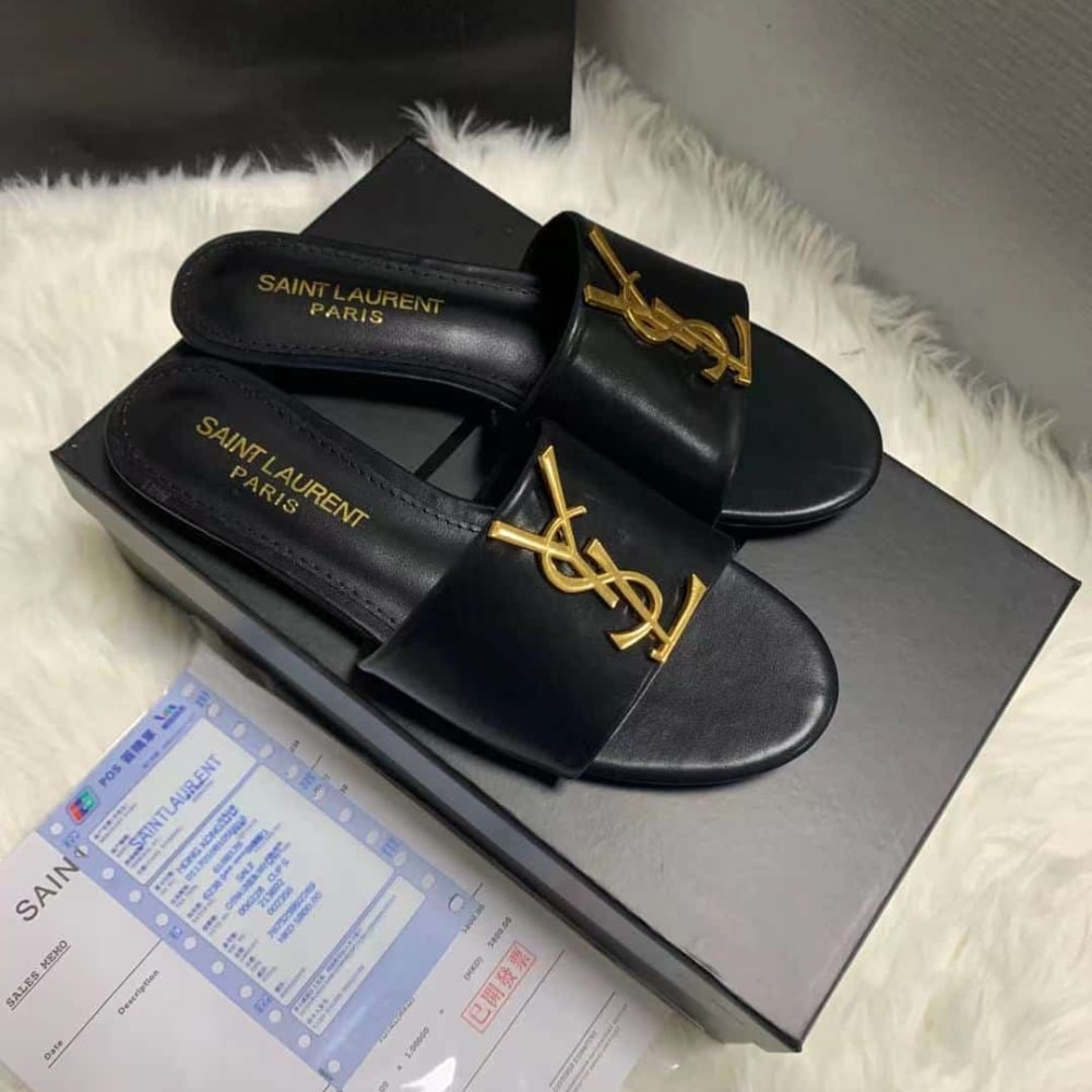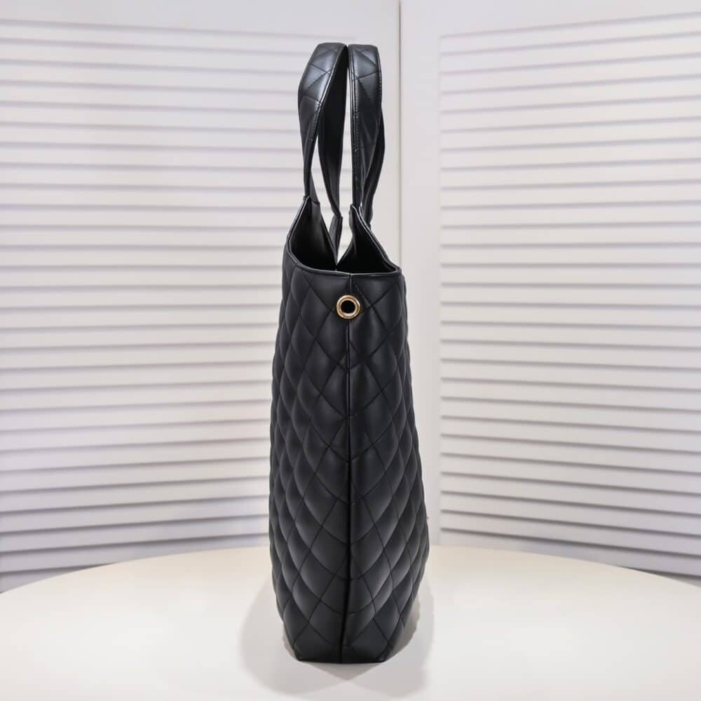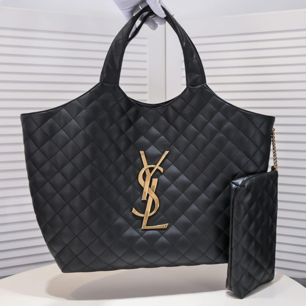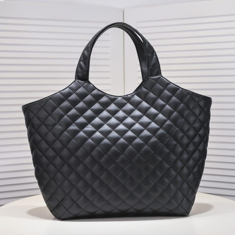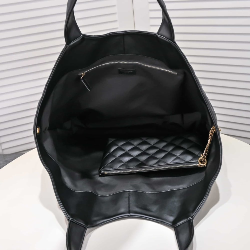 SUMMER SET: SAINT LAURENT ICARE MAXI SHOPPING BAG IN QUILTED BLACK 50CM 698651AAANG1000 & LOGO SLIPPERS BLACK