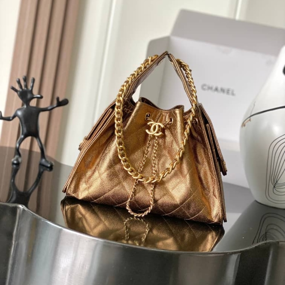 Chanel 25 Small Handbag Metallic Grained & Gold-Tone Metal Dark Gold AS5293 B21060 U2158 / 26 cm / 10.2 inches