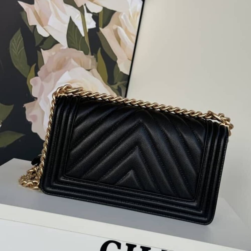 Chanel Le Boy Chevron Caviar Black/ 25 cm / 9.8 inches