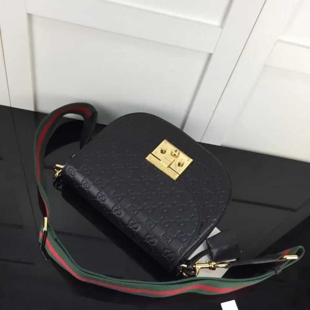 Gucci Padlock Signature Leather Shoulder Bag Black/ 25 cm/ 9.8 inches