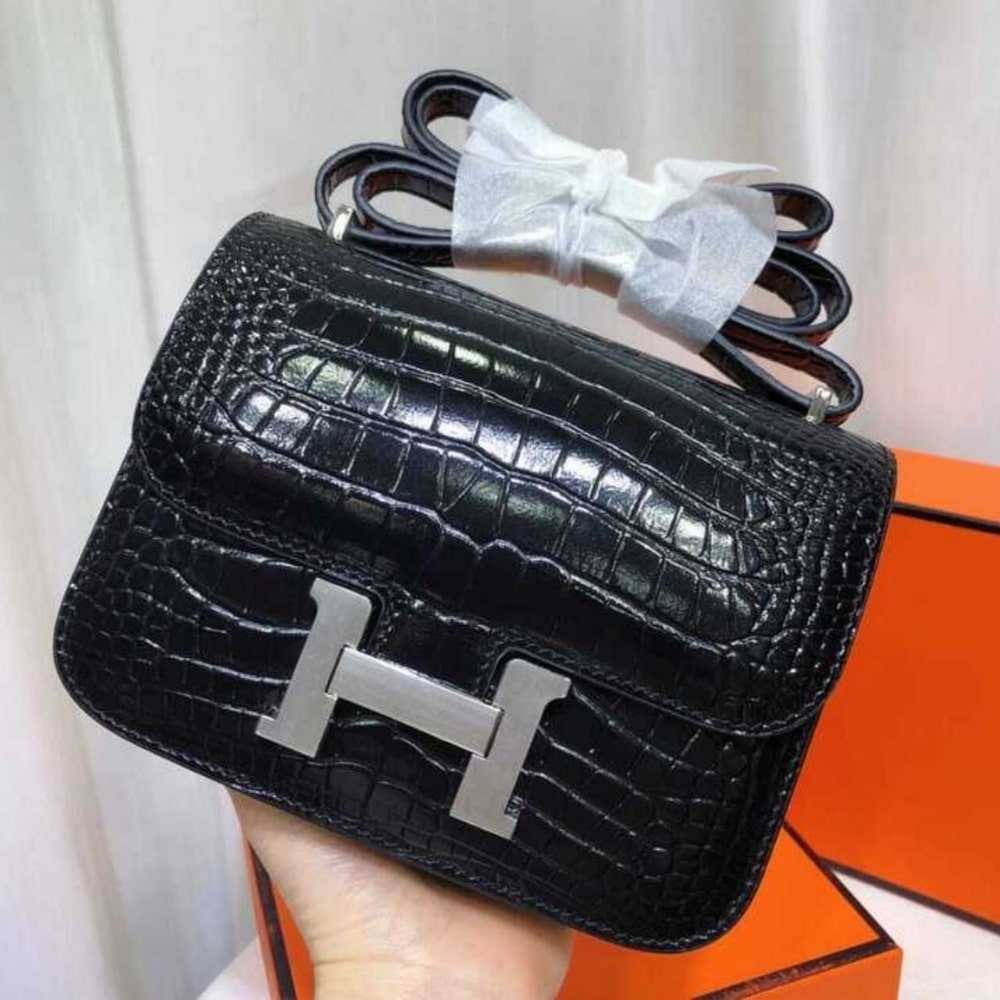 Hermes Constance Shiny Black/ 19 x 6 x 15 cm/ 7.5 x 2.4 x 5.9 inches
