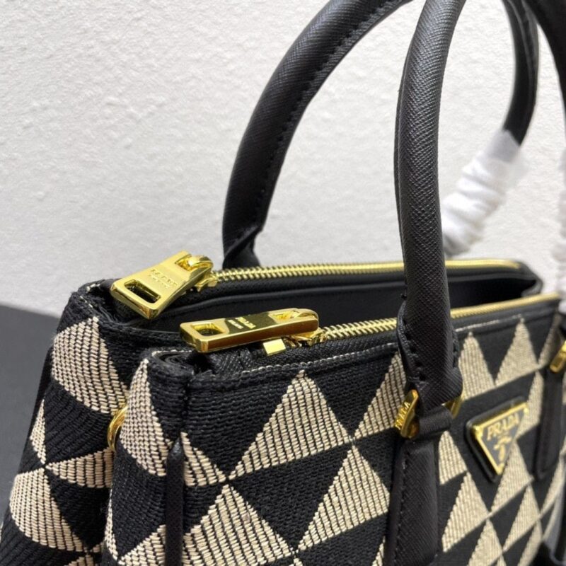 [SUPER VIP 1:1] PRADA GALLERIA MEDIUM SYMBOLE EMBROIDERED FABRIC BAG BLACK AND BEIGE 28CM 1BA863 2FKL F0Y30 V OOO
