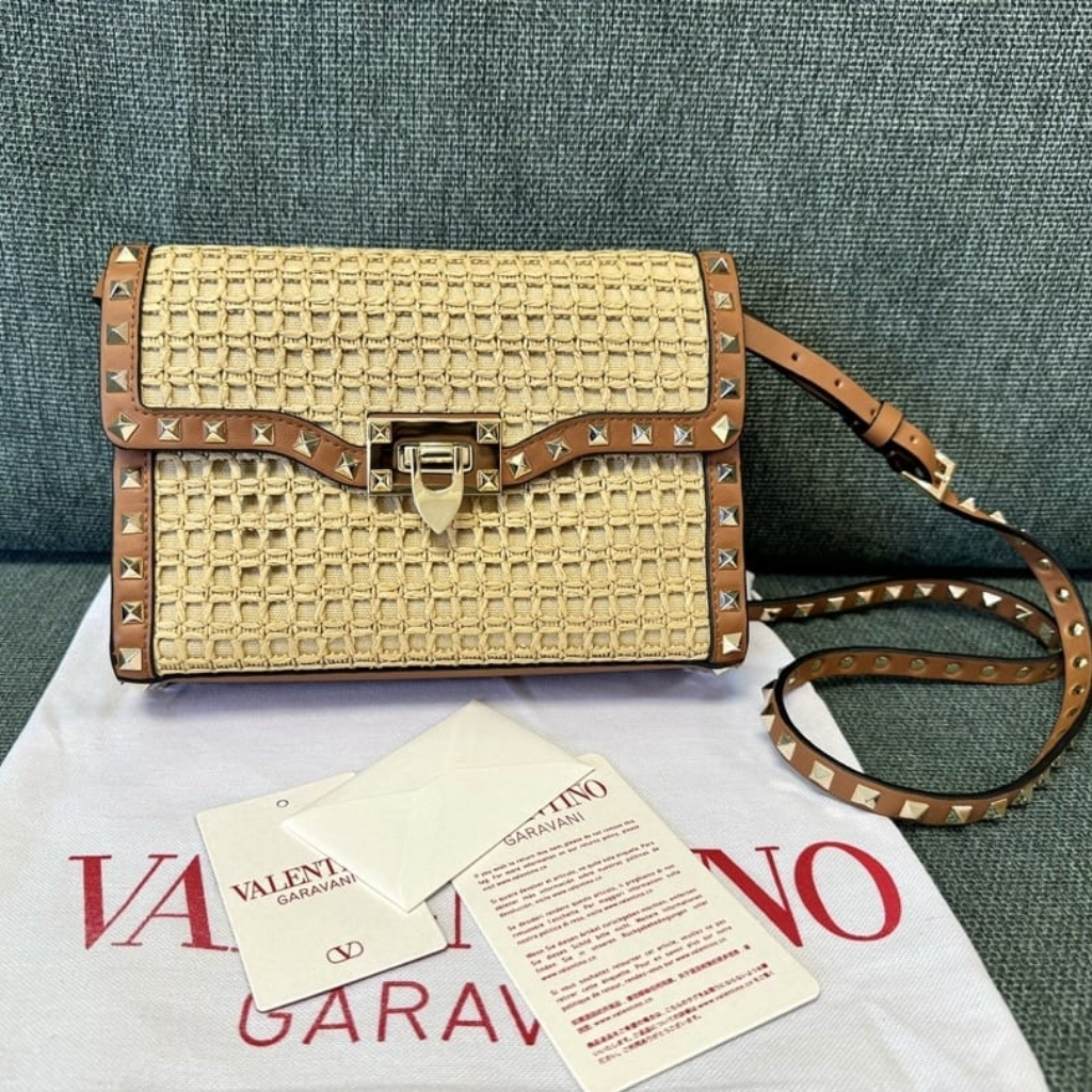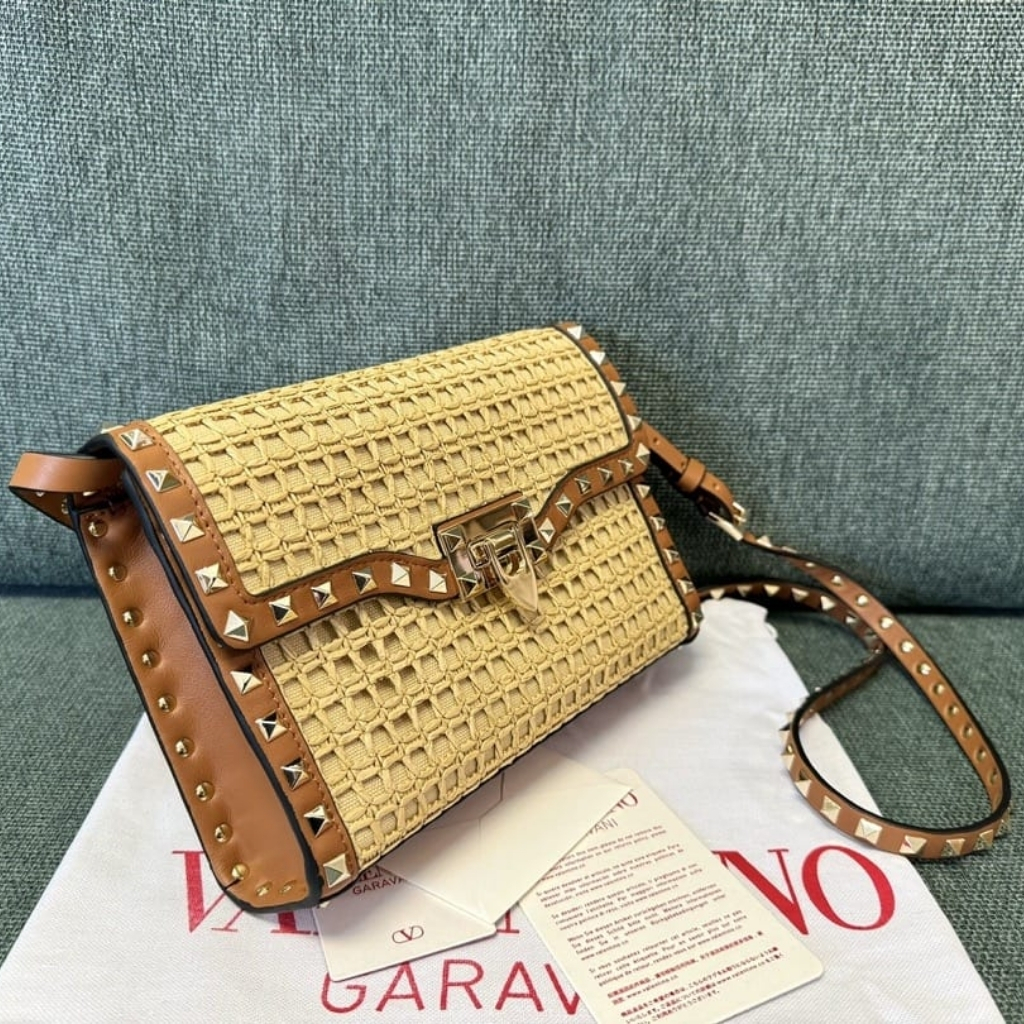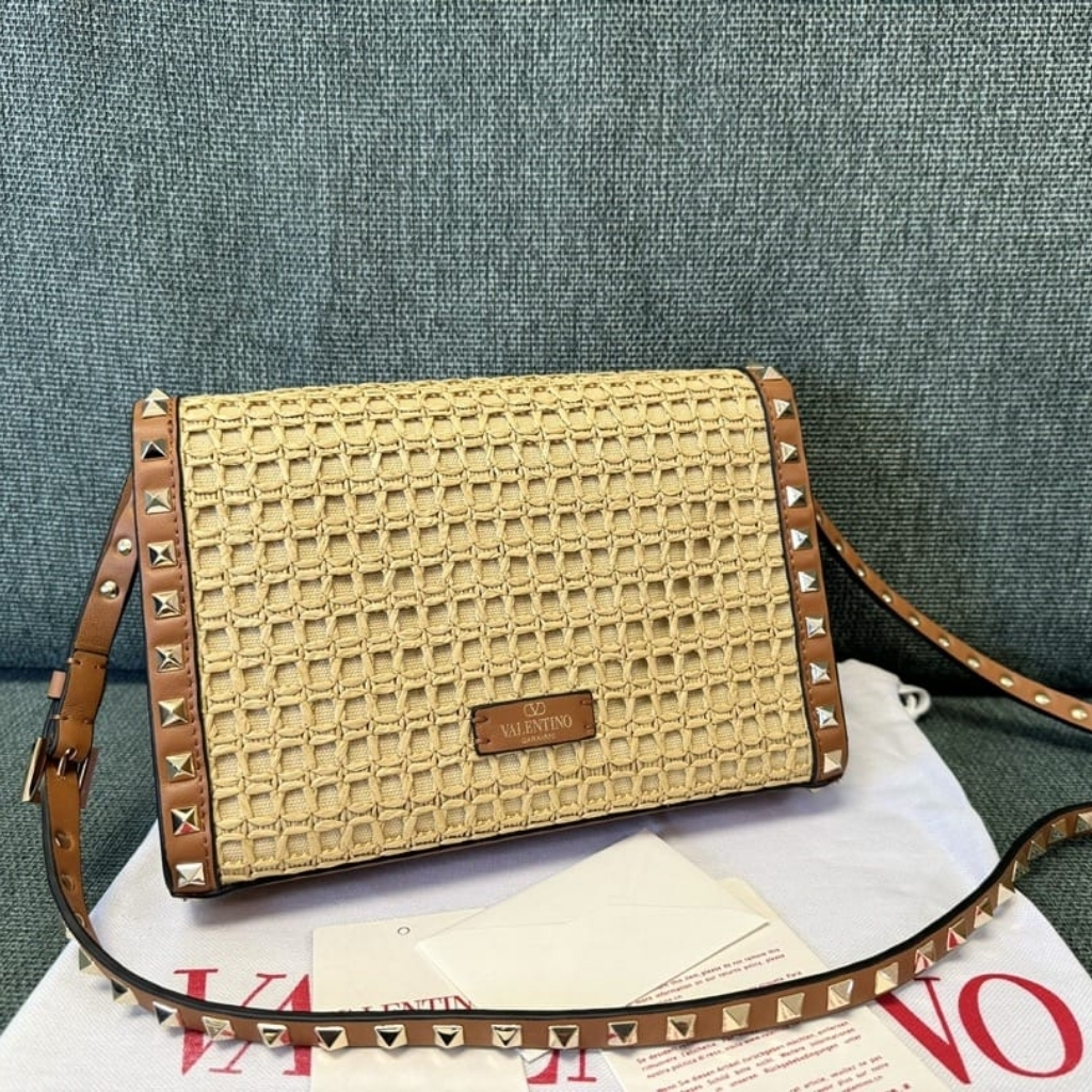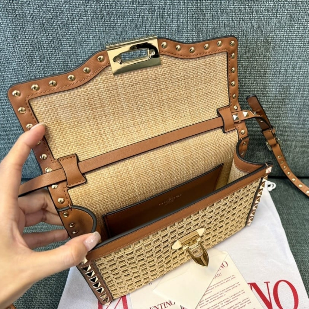 [True To Original – Super Vip 1:1] Valentino Garavani Rockstud Small Raffia Shoulder Bag Natural 22cm 8W2B0R43UEN 43S