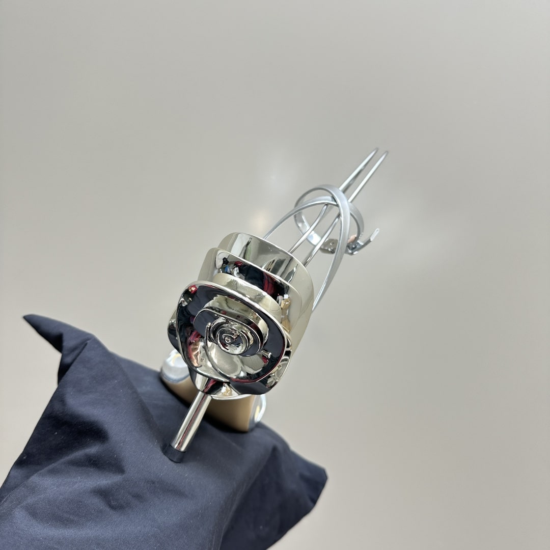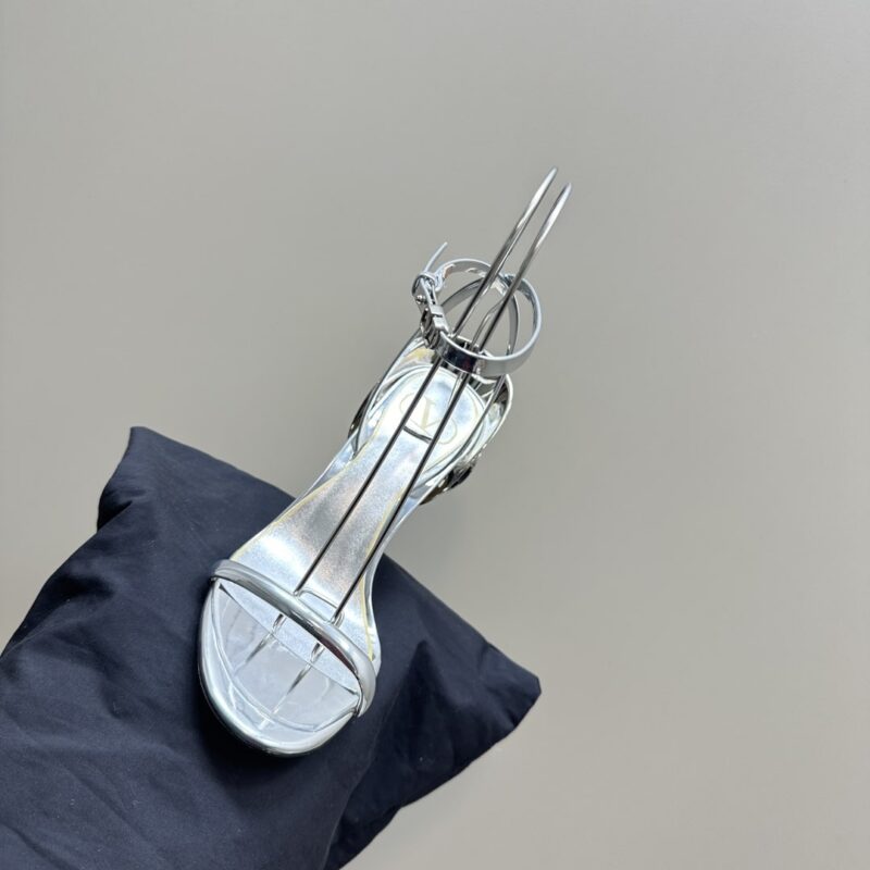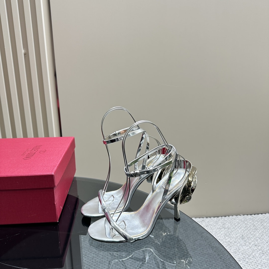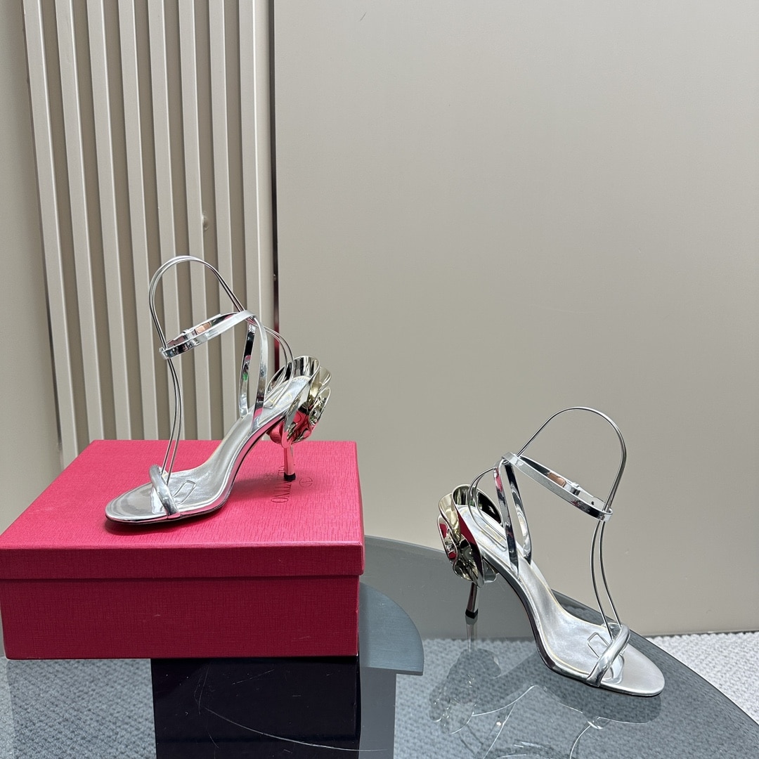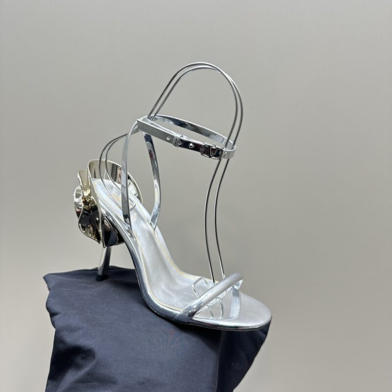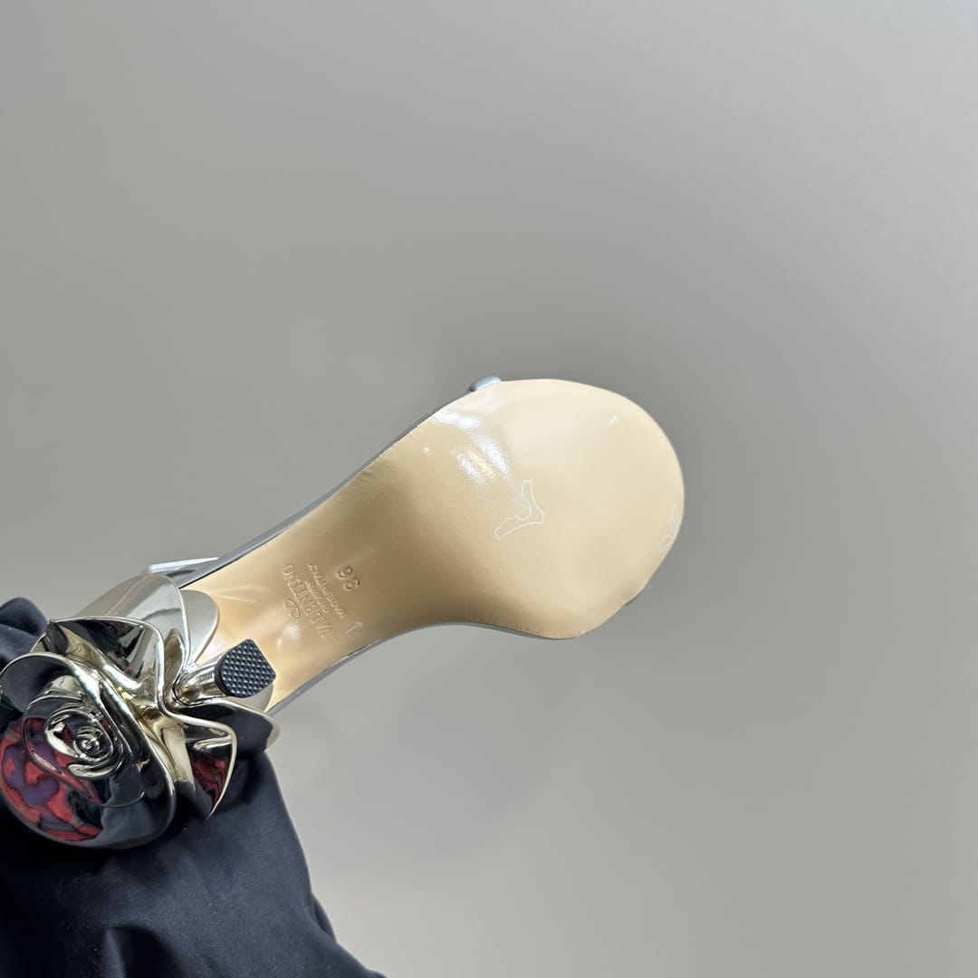 VALENTINO GARAVANI ARCHIVE ROSEROUCHE METALLIC LEATHER HIGH HEEL SILVER