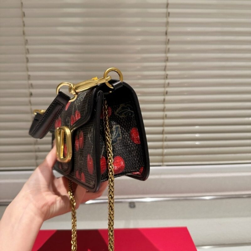 Valentino Garavani Locò Cherryfic Motif Shoulder Bag Black 26Cm