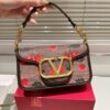 Valentino Garavani Locò Cherryfic Motif Small Shoulder Bag Brown 20Cm