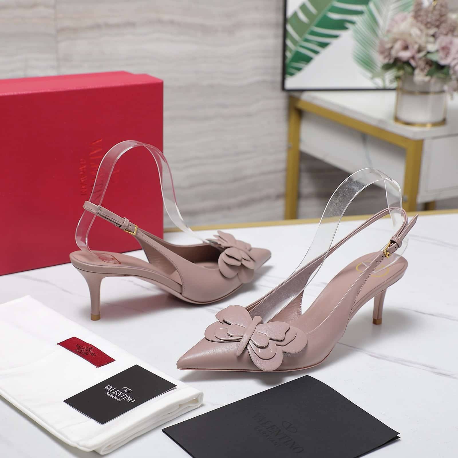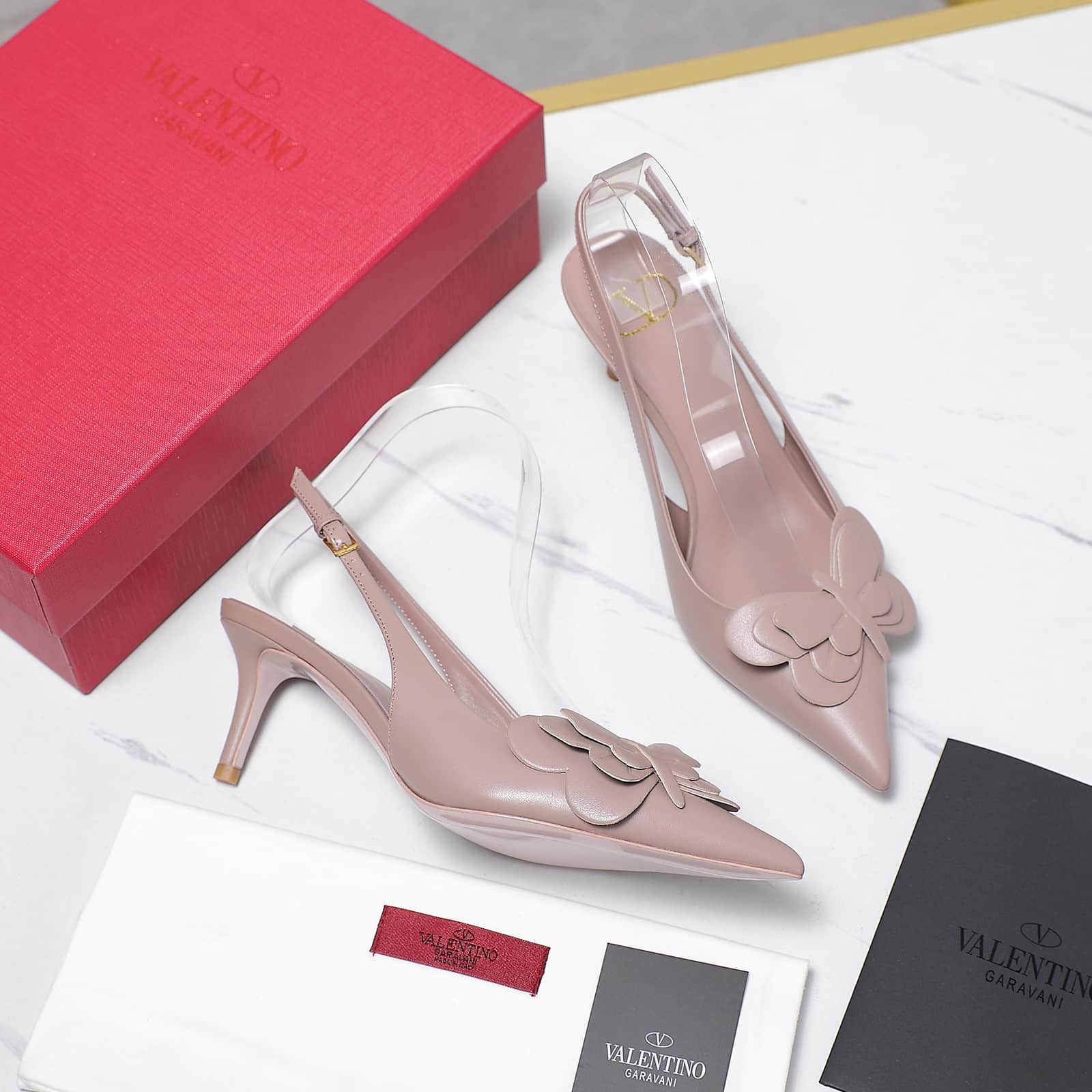- VLogo Signature in antique brass-effect on heel