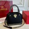 Valentino Garavani Rockstud Handbag In Grainy Calfskin Black 21 cm / 8.3 inches