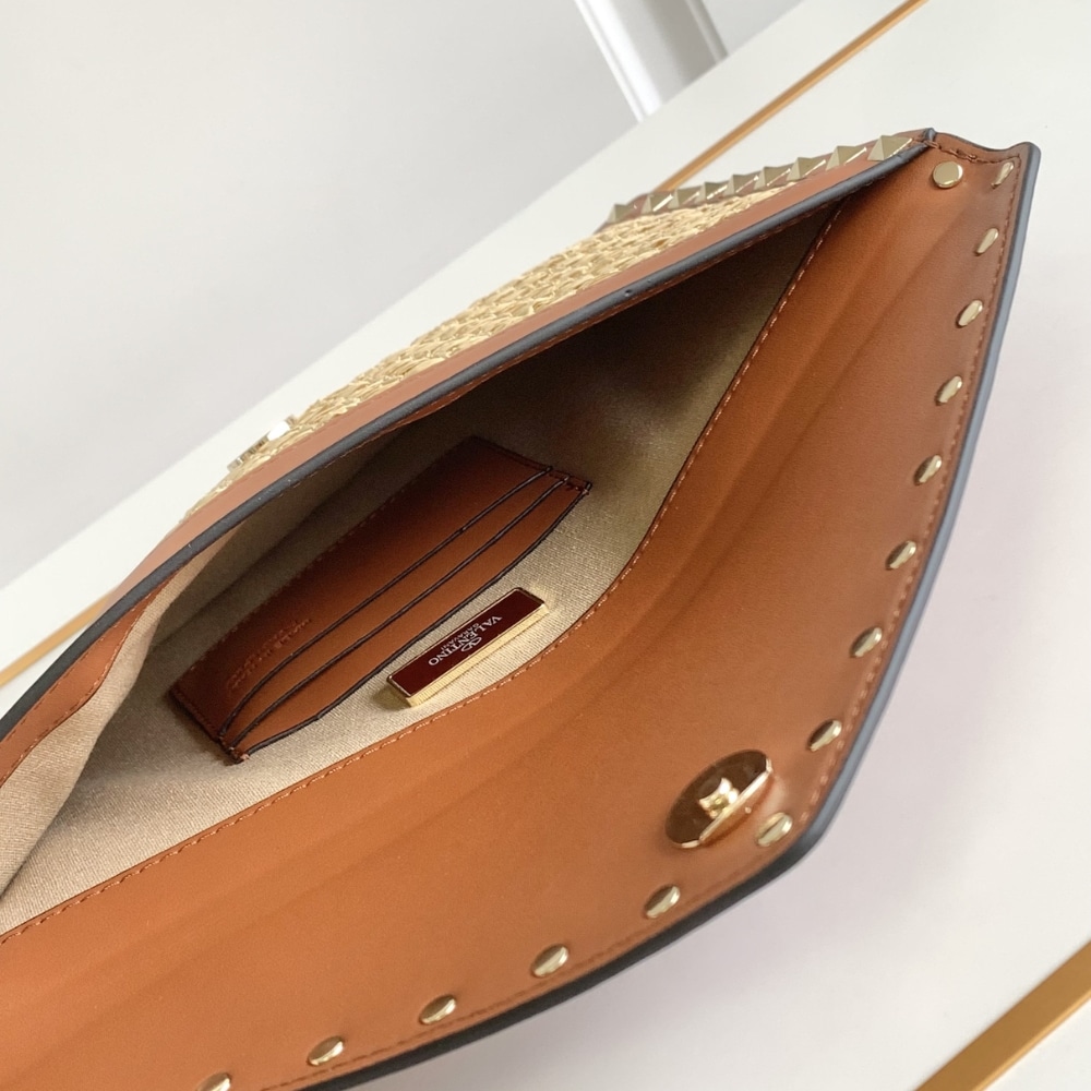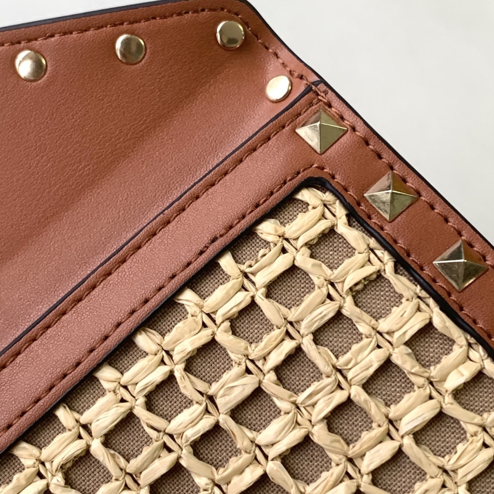 Valentino Garavani Rockstud Raffia Clutch Bag Brown / 28 cm/ 11.4 inches