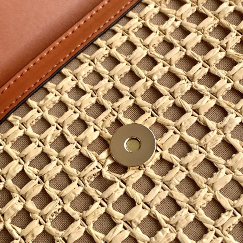 VALENTINO GARAVANI ROCKSTUD RAFFIA CLUTCH BAG IN BROWN 28CM