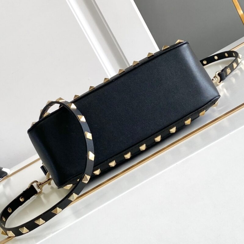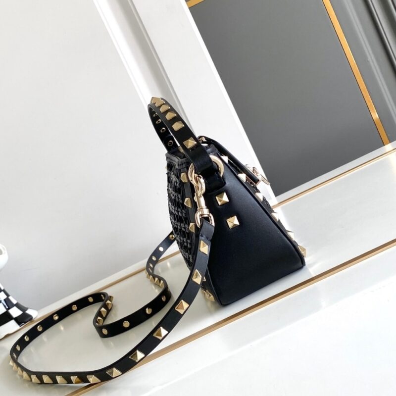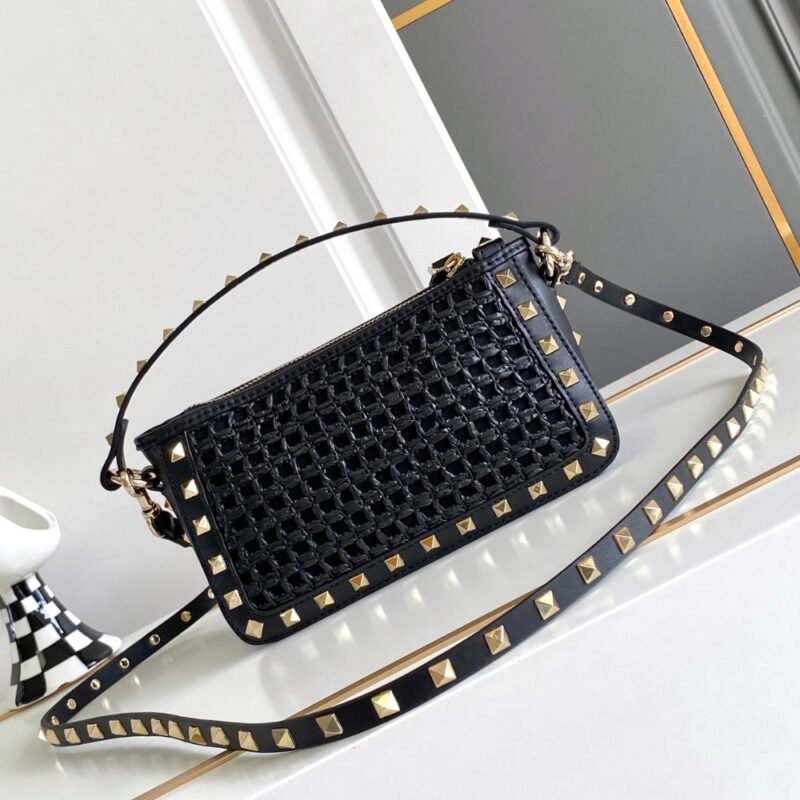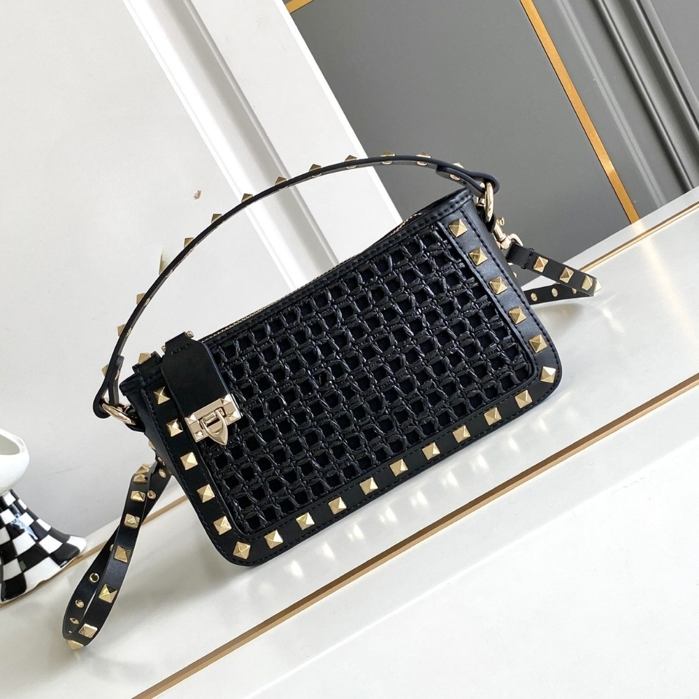 Valentino Garavani Rockstud Raffia Small Crossbody Bag Black 19Cm
