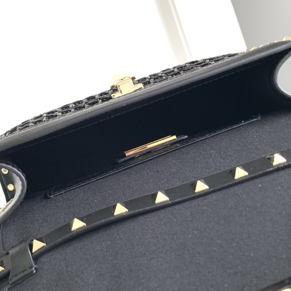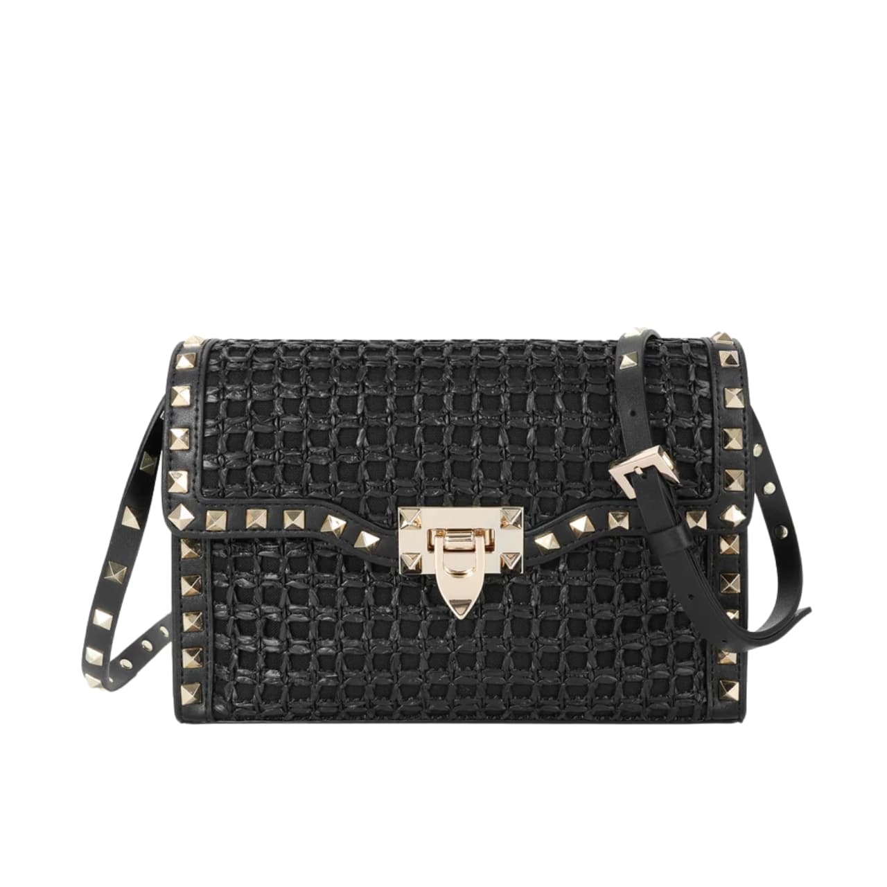 Valentino Garavani Rockstud Small Raffia Shoulder Bag Natural 22Cm