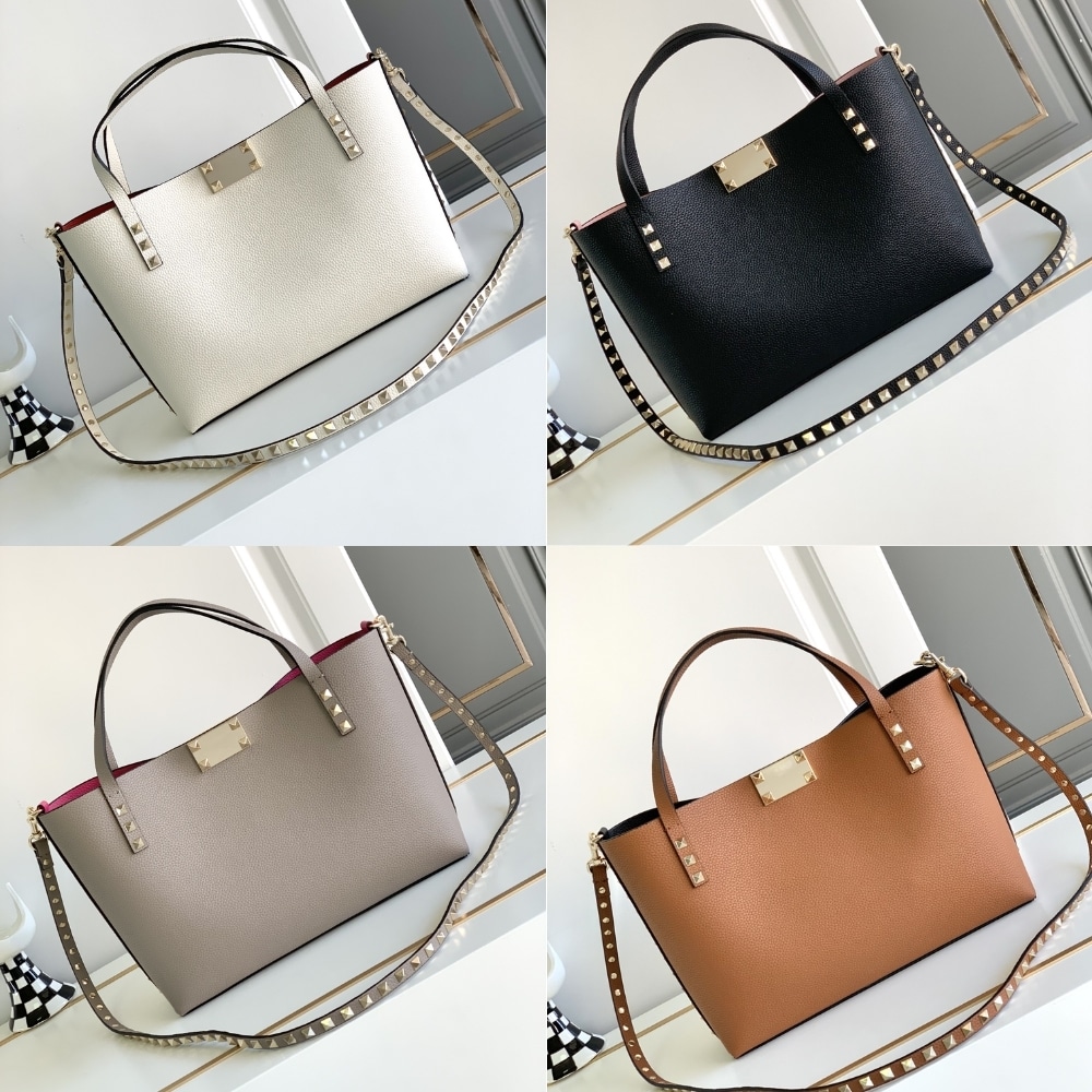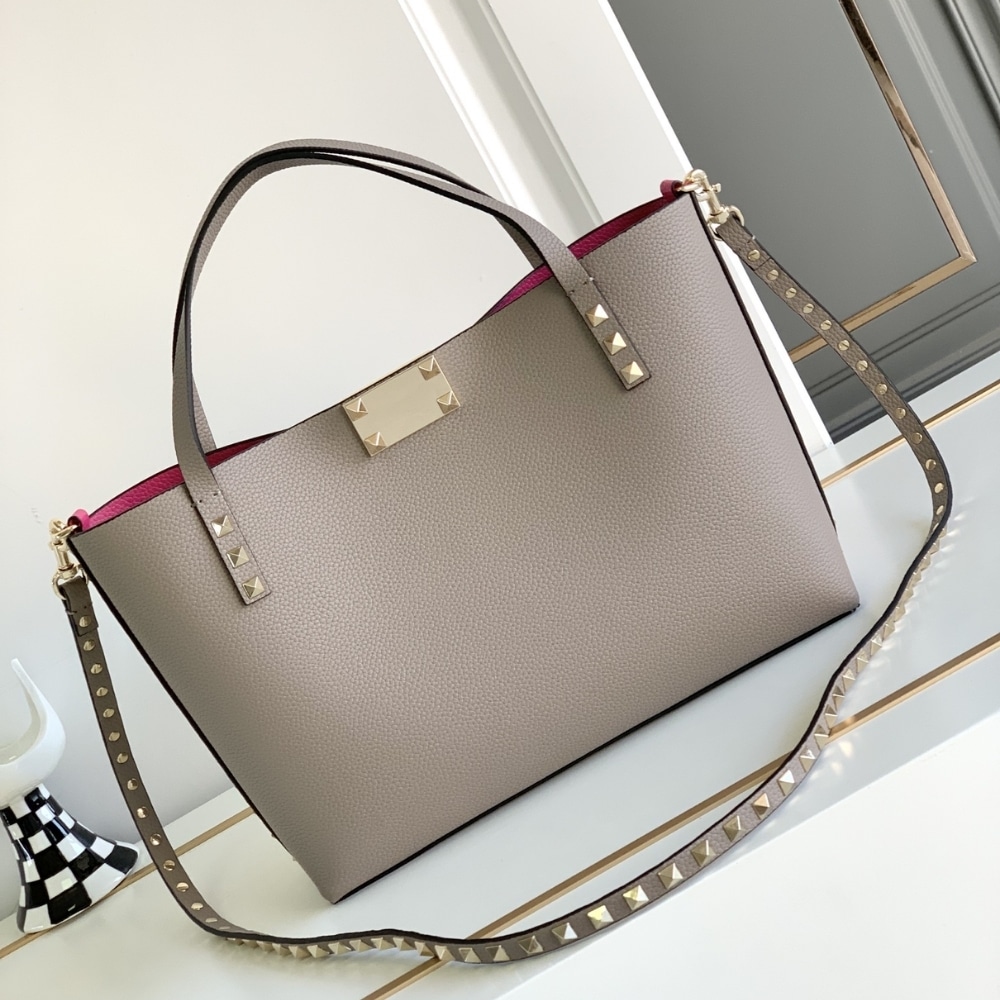 Valentino Garavani Rockstud Small Tote Bag Grey Genuine 28cm