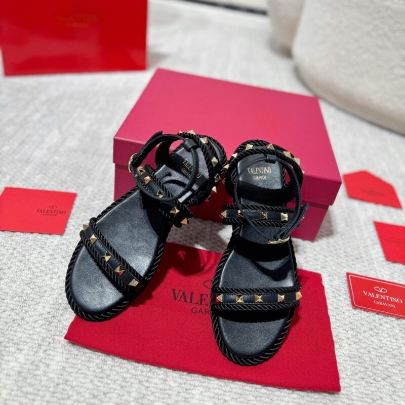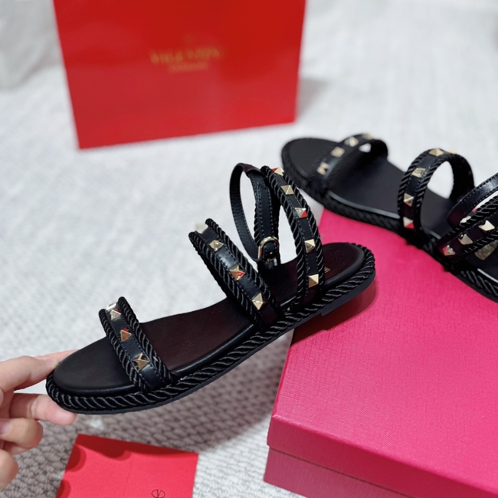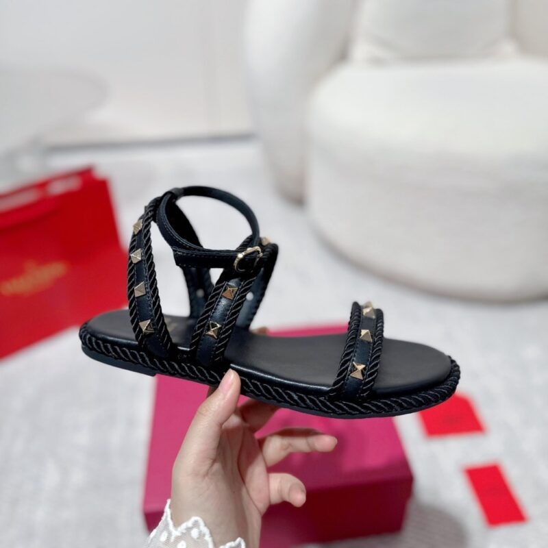 VALENTINO GARAVANI ROCKSTUD TORCHON LEATHER SANDAL BLACK 6W2S0KW8BAE 0NO