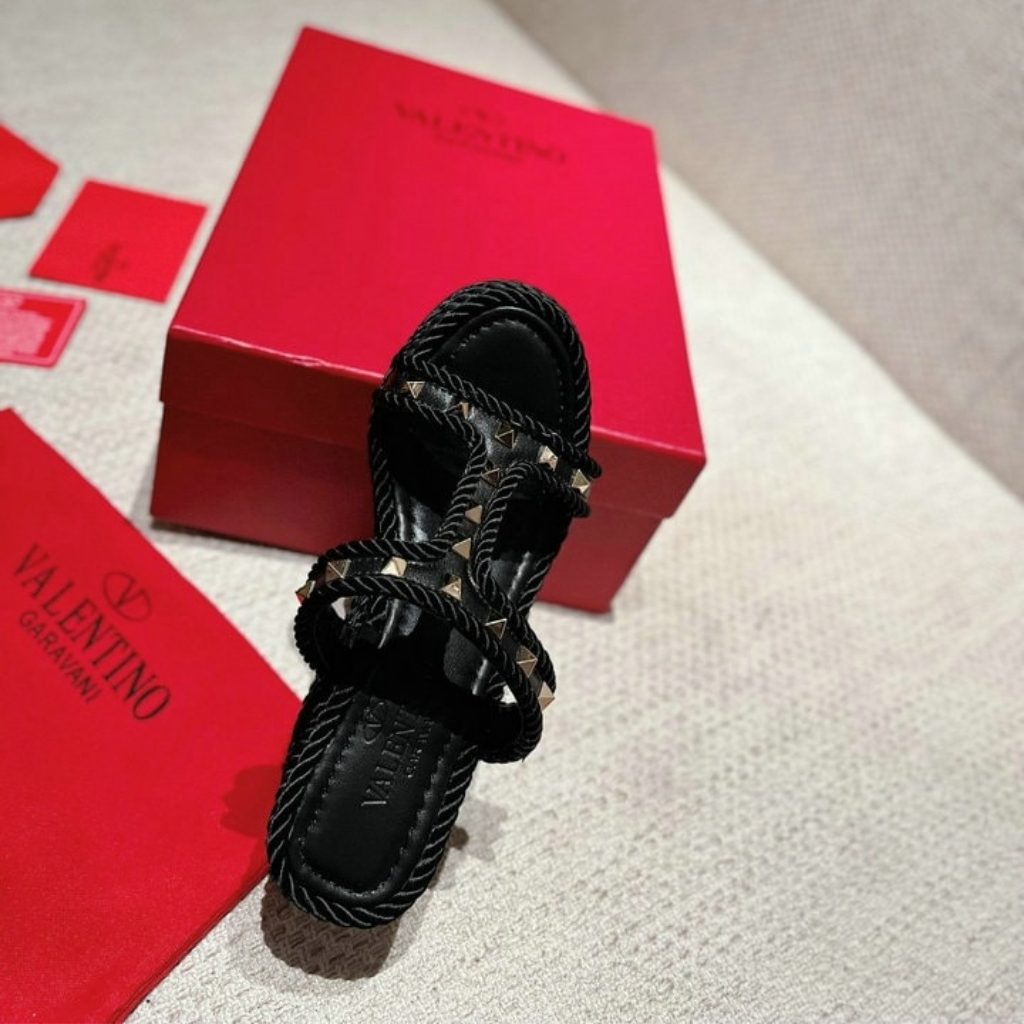 1:1 Replica Shoes – Valentino Garavani Rockstud Wedge Sandals Black