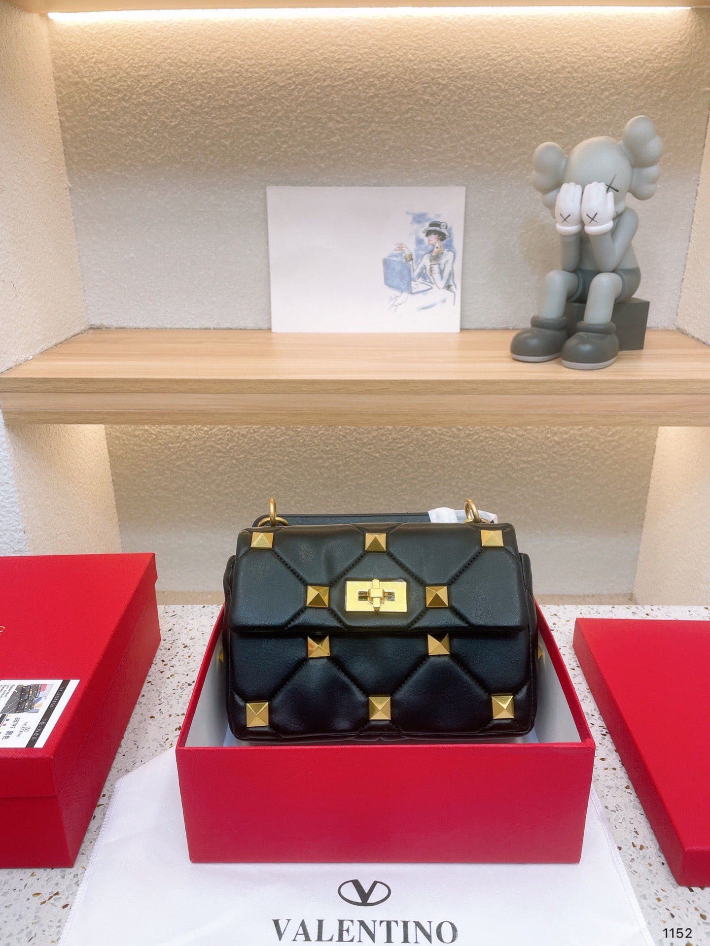 Valentino / Garavani Roman Stud Chain-Link Shoulder Bag / Black