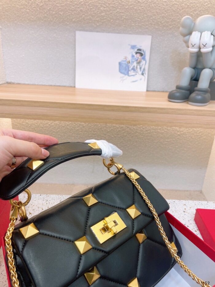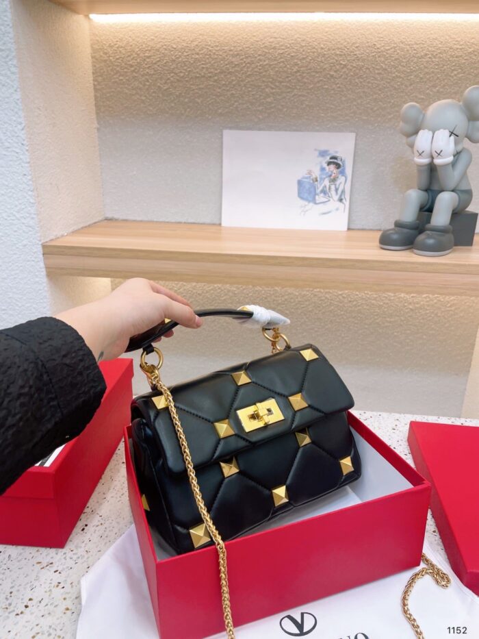 VALENTINO GARAVANI ROMAN STUD CHAIN LINK SHOULDER BAG IN BLACK 1W2B0I82BSF
