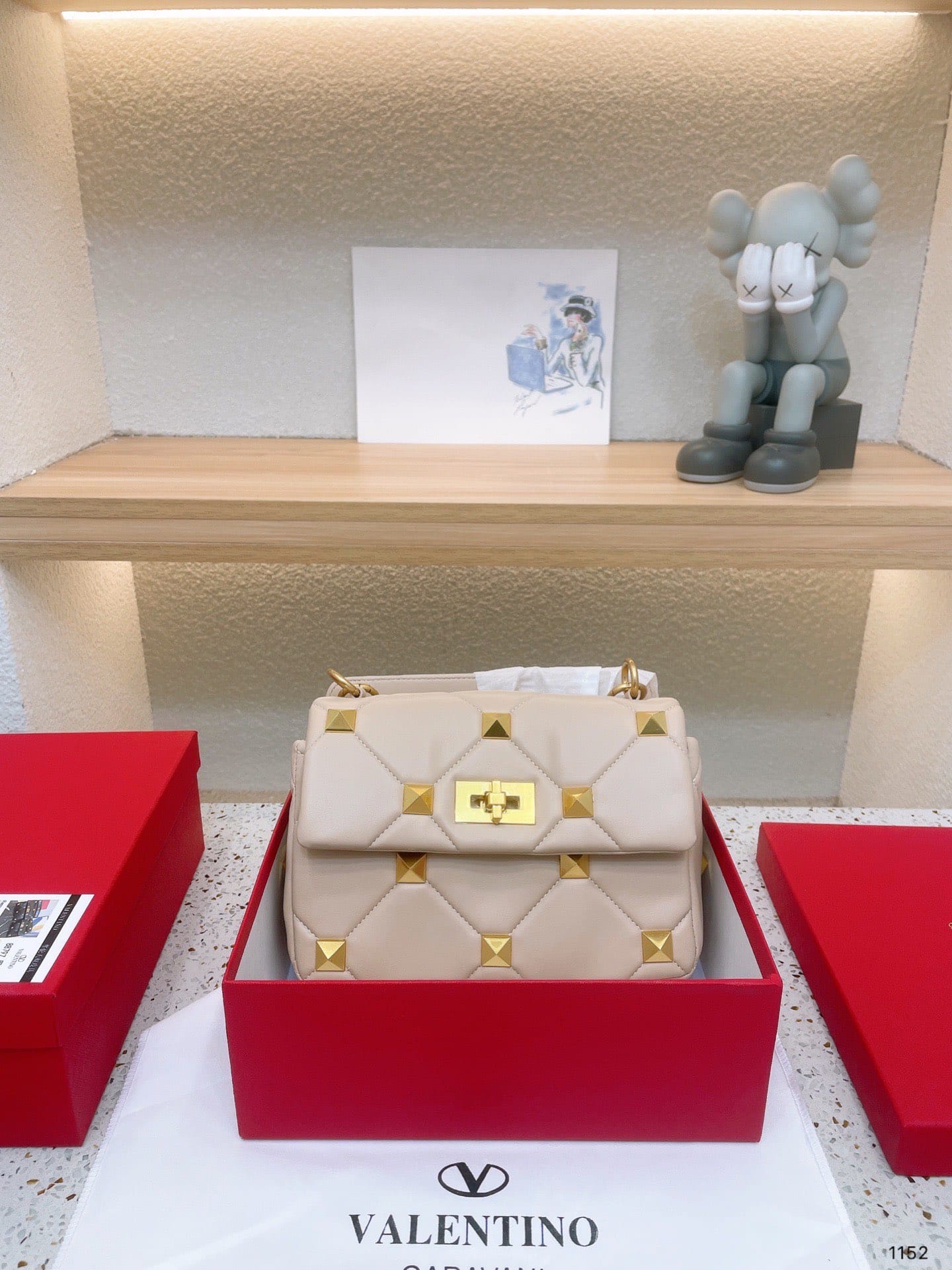Valentino / Garavani Roman Stud Chain-Link Shoulder Bag / Rose Pink