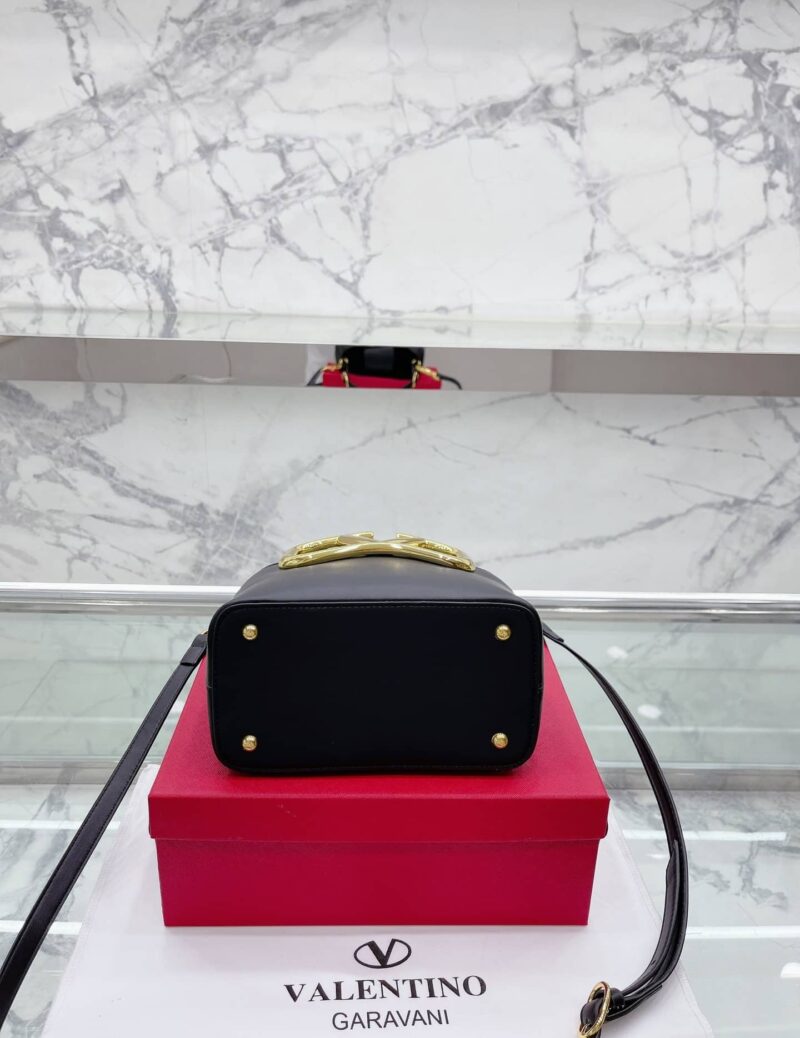 VALENTINO GARAVANI SUPERVEE LEATHER BUCKET BAG BLACK 20CM