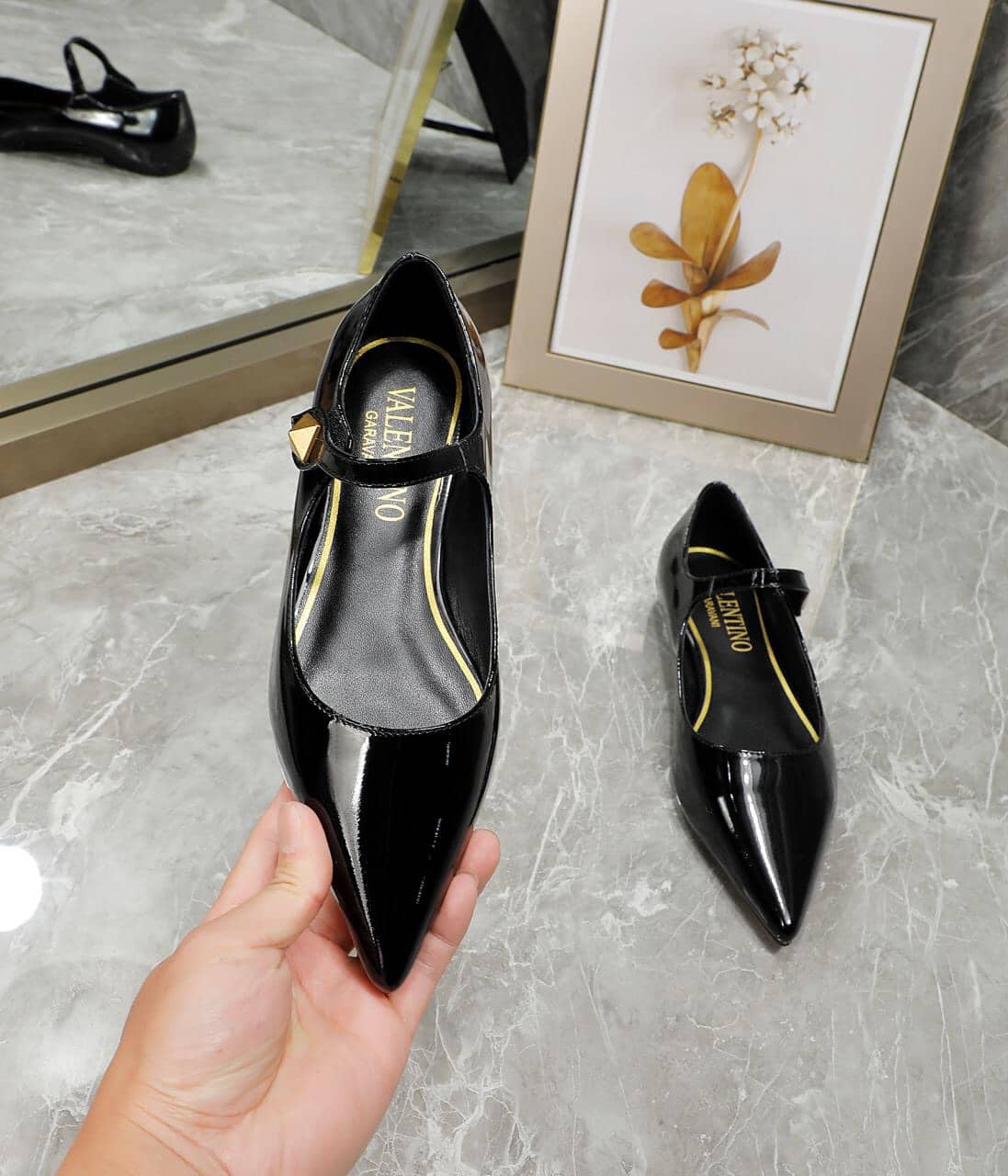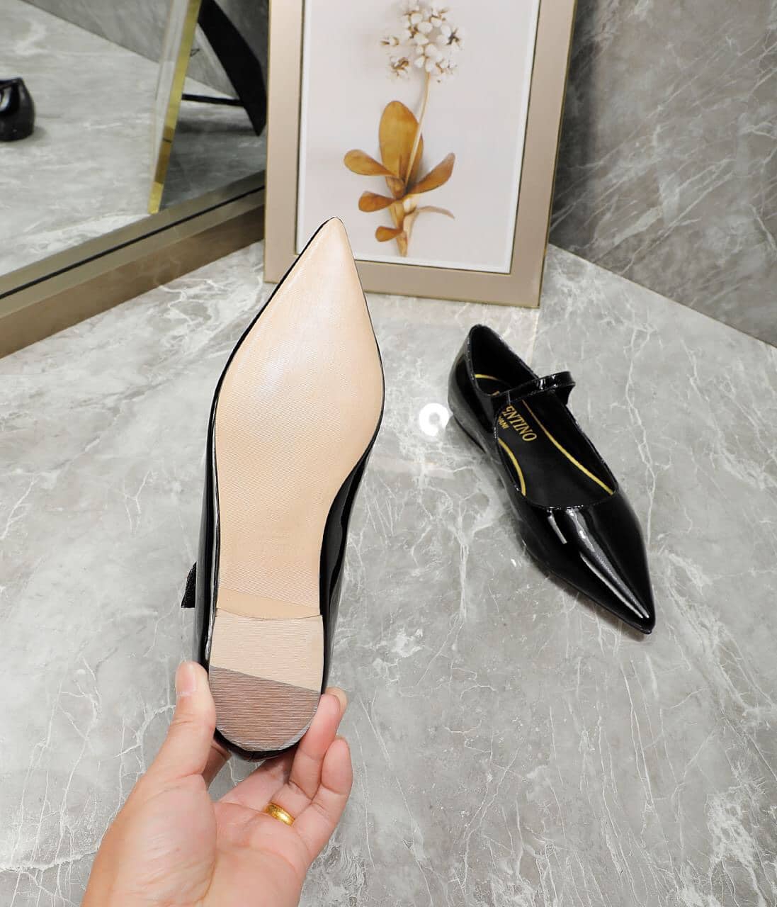 VALENTINO GARAVANI TIPTOE PATENT LEATHER BALLET FLATS BLACK 2W2S0GC3ERU0NO