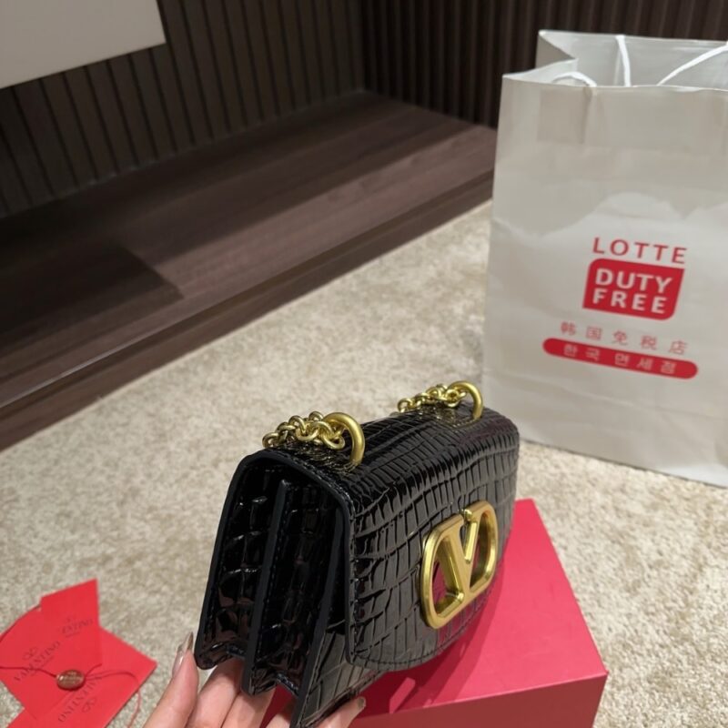 Valentino Garavani Vain Small Shoulder Bag In Crocodile Black 19Cm 6W0B0R17TVG 0NO