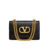 Valentino Garavani Vain small shoulder bag in shiny calfskin with metallic VLogo Signature detail. The bag can be carried on the shoulder/cross body thanks to the sliding chain.