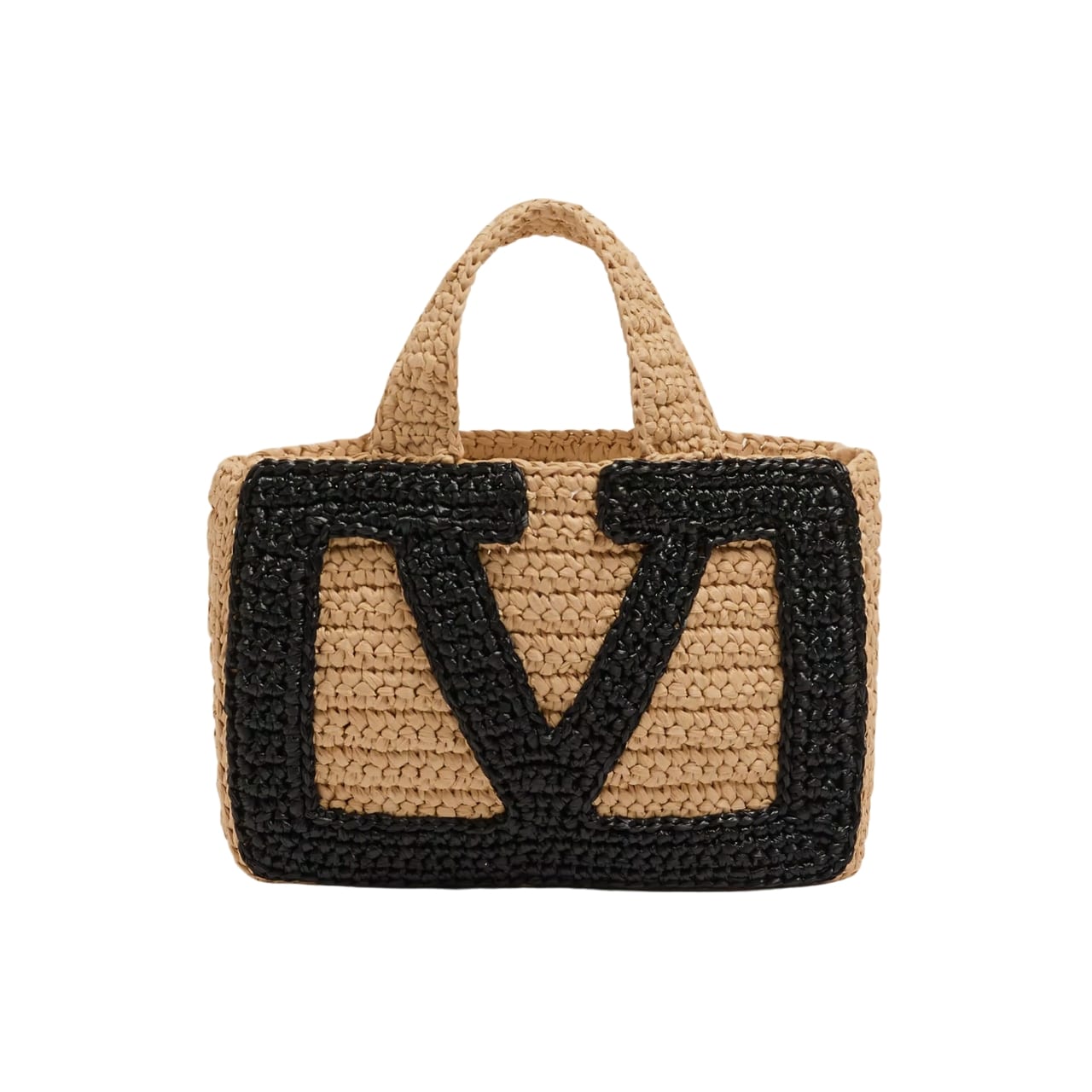 Valentino Garavani Viva Superstar Small Shopping Bag In Raffia Beige 25Cm / 9.84 inches