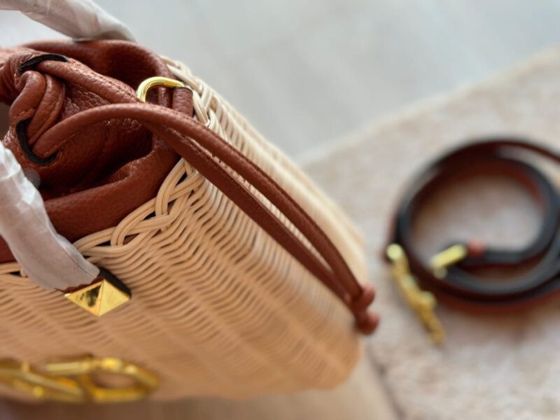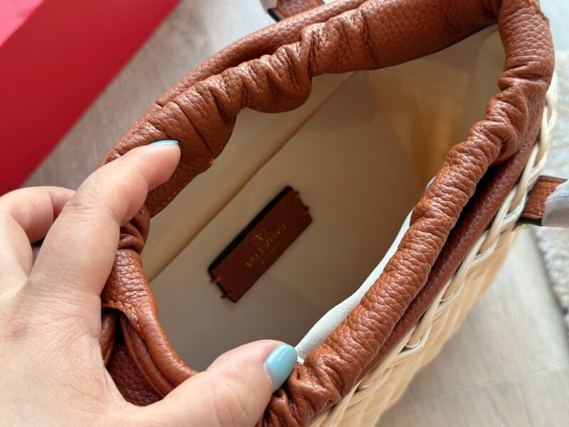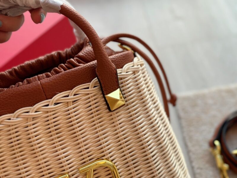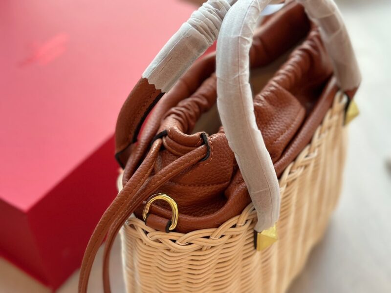 Valentino Garavani Wo Vlogo Small Wicker Basket Bag Beige 25cm