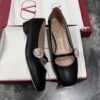 - Strap detailed with jeweled button with crystals and VLogo Signature decoration in antique brass-effect finish