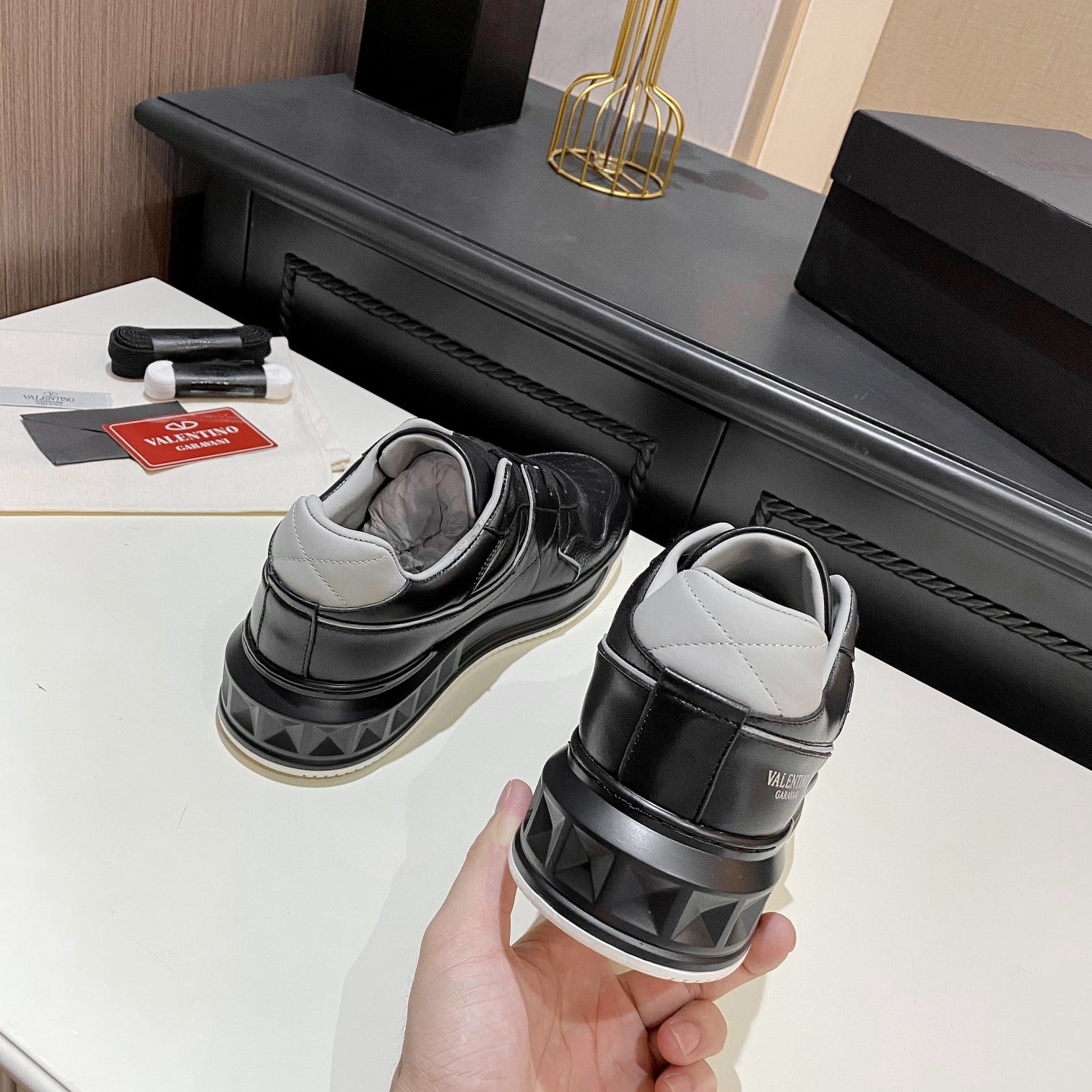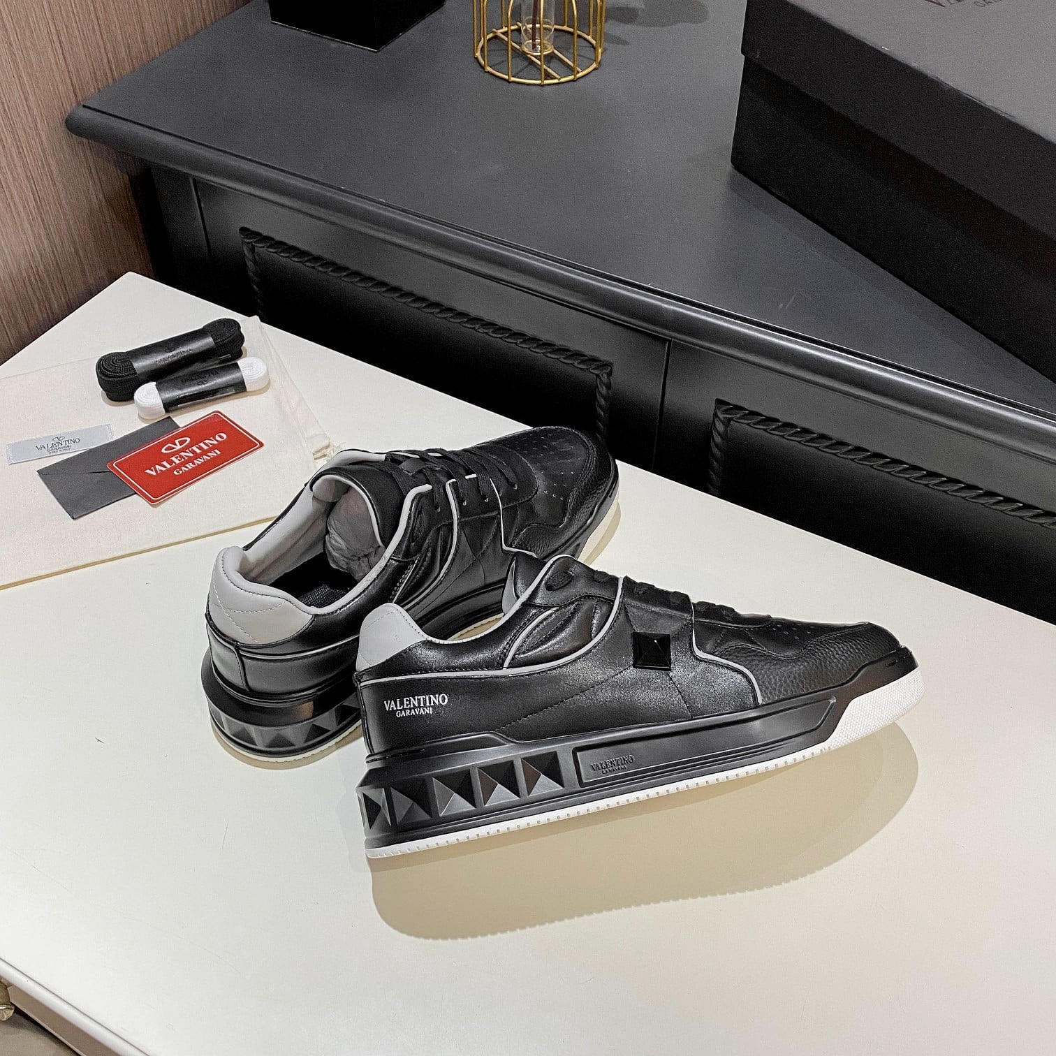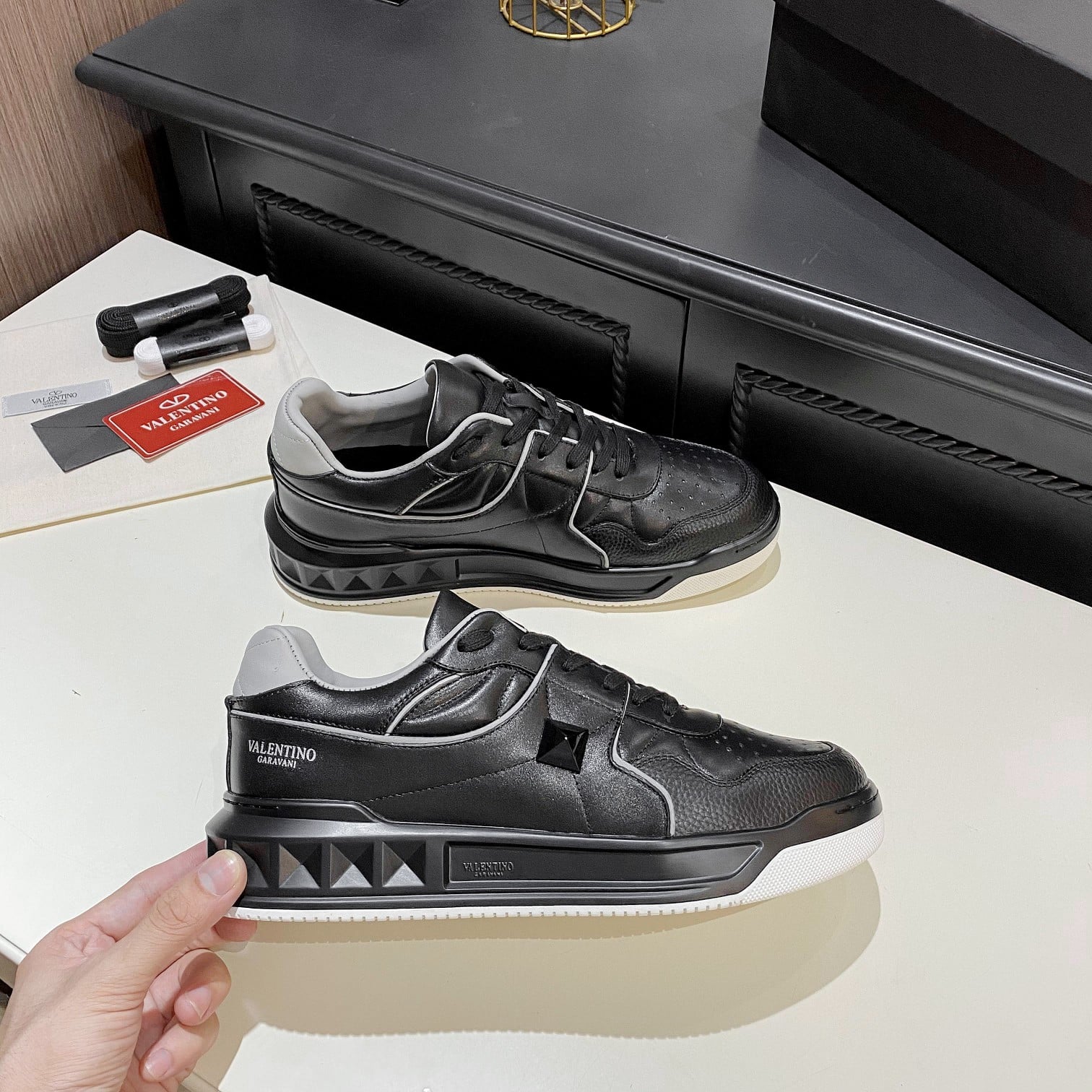 VALENTINO ONE STUD LOW-TOP NAPPA SNEAKER BLACK 1Y2S0E71NWN00A