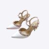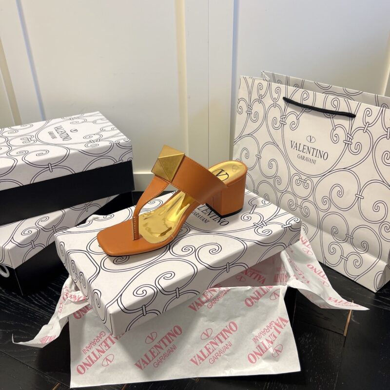 VALENTINO ONE STUD METALLIC NAPPA FLAT MIDDLE HEEL BEIGE THONG SANDAL
