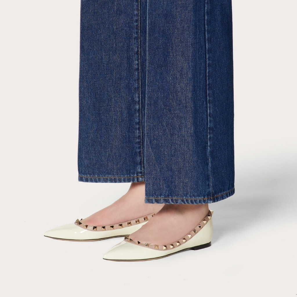 1:1 Replica Shoes – Valentino Patent Rockstud Ballet Flat White W2S0403VNW L62
