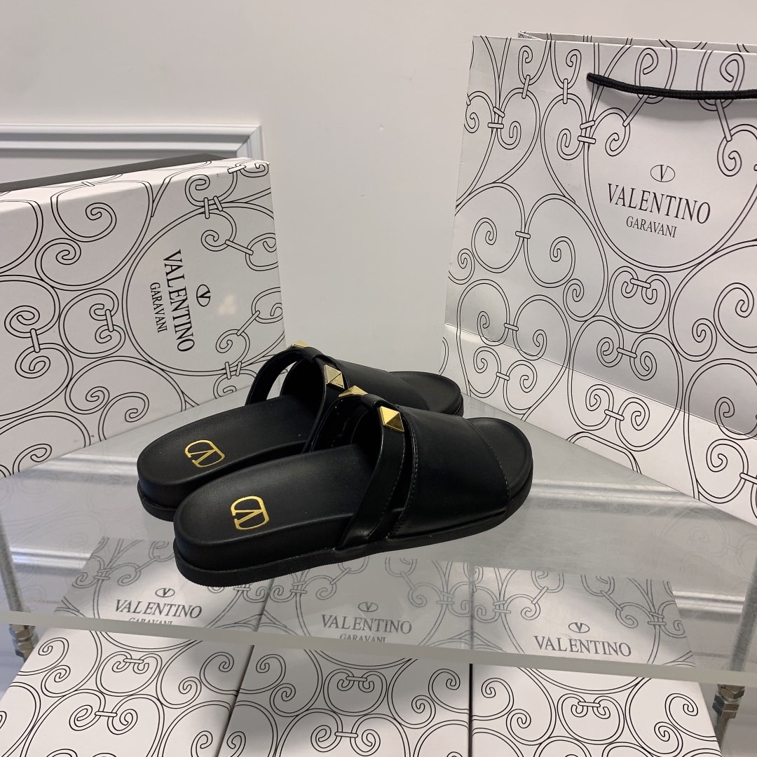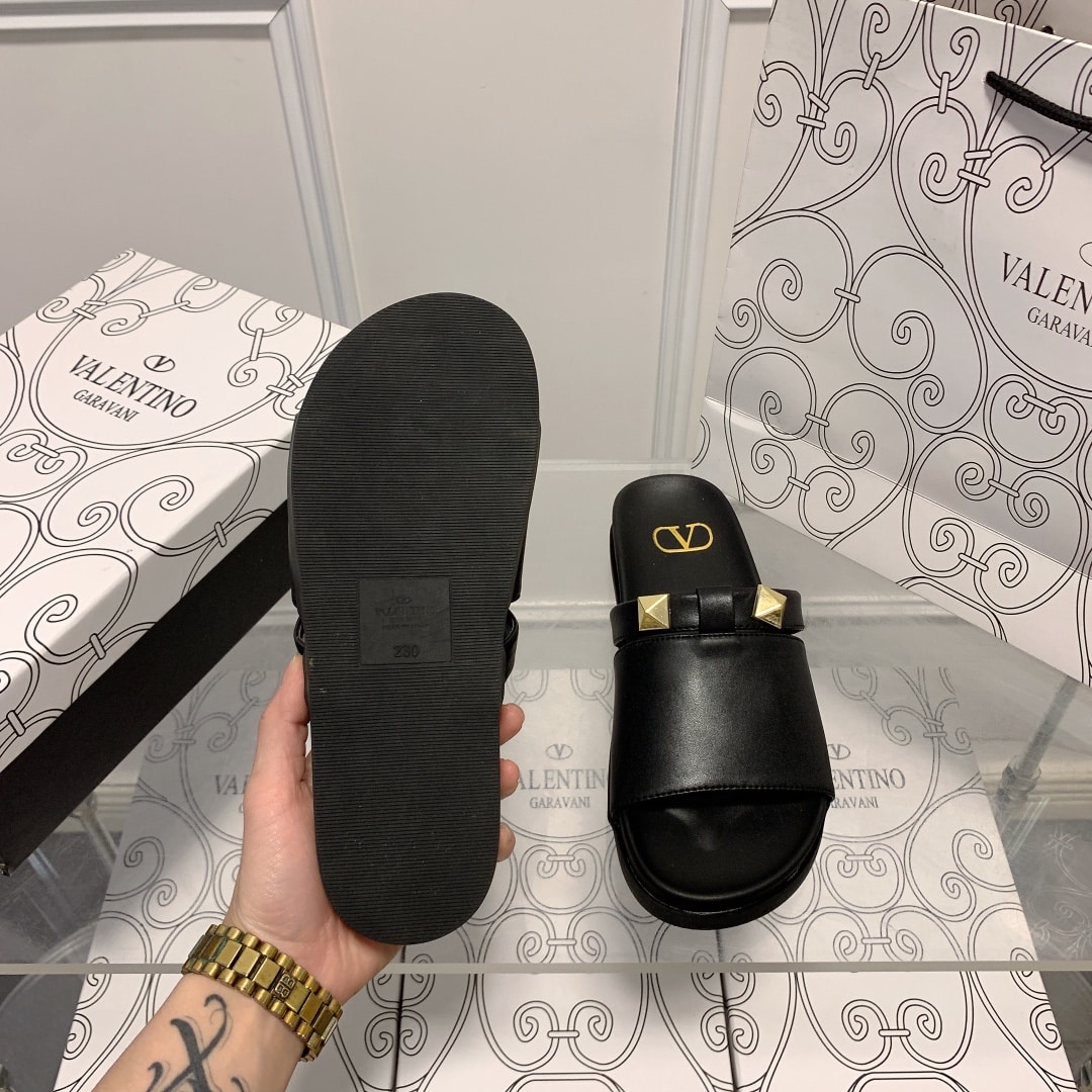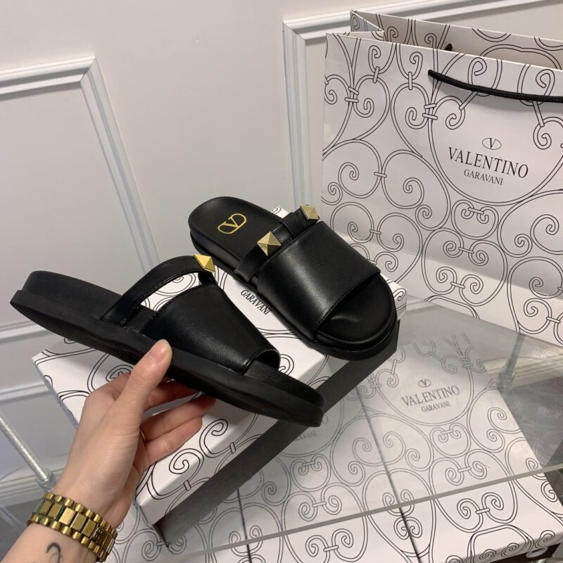 VALENTINO ROCKSTUD BLACK SLIDE SANDALS