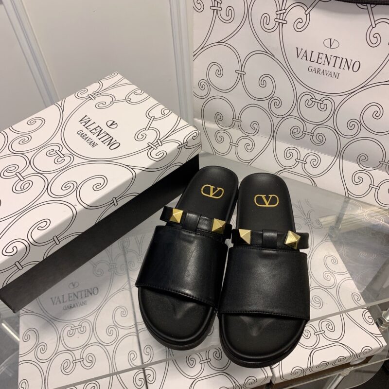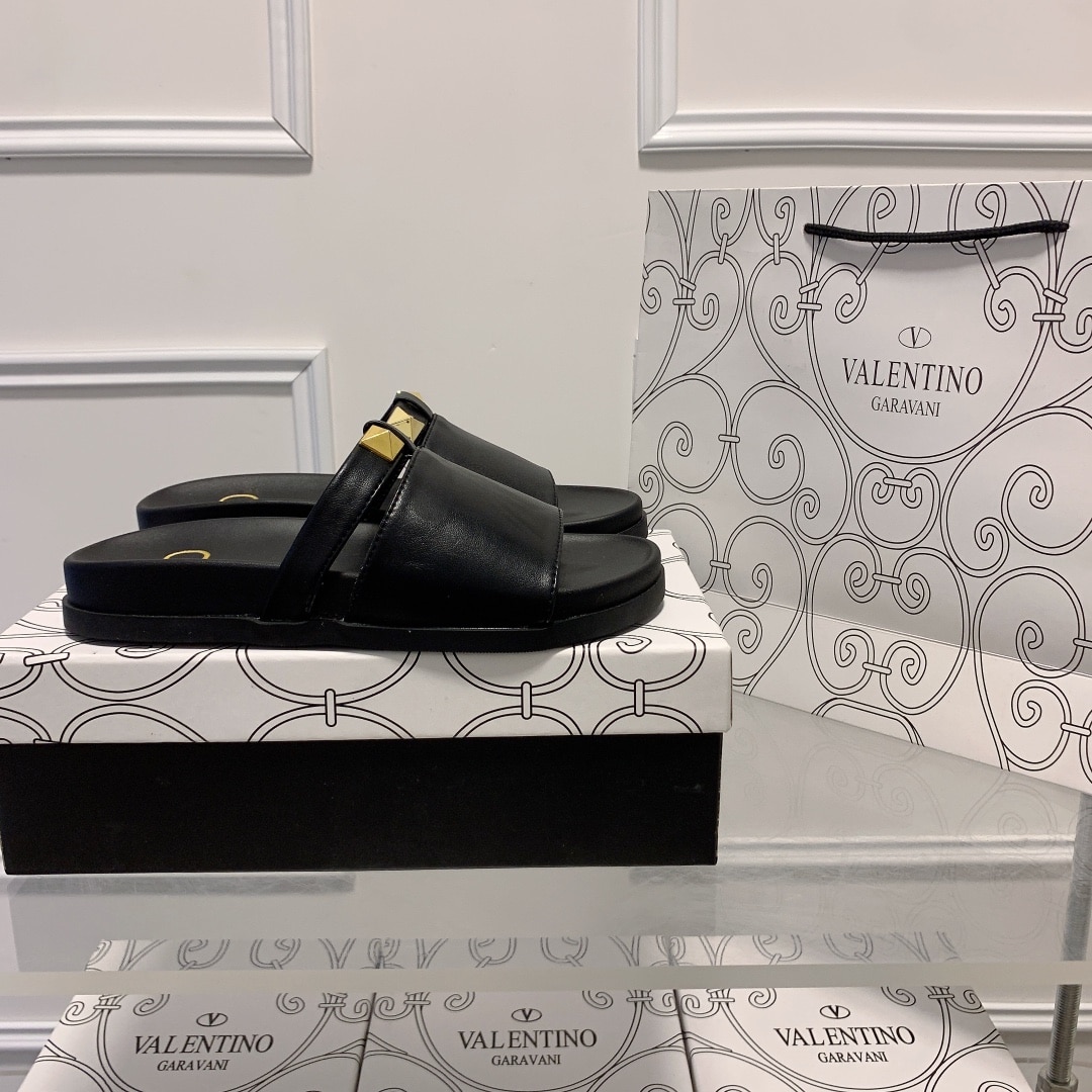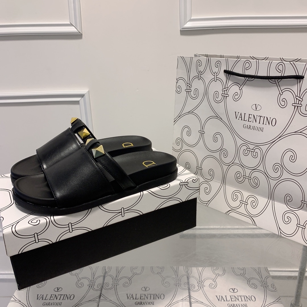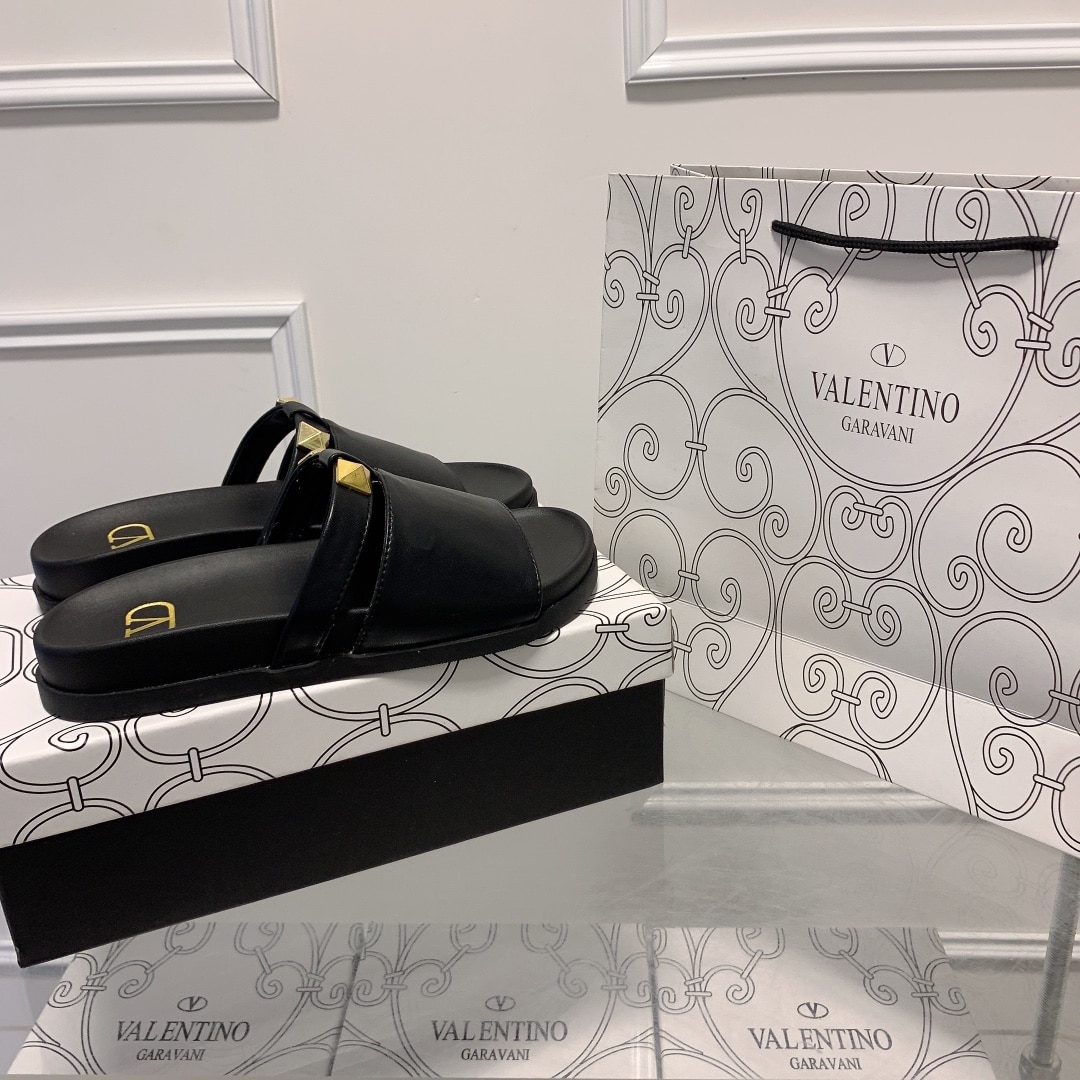 VALENTINO ROCKSTUD BLACK SLIDE SANDALS