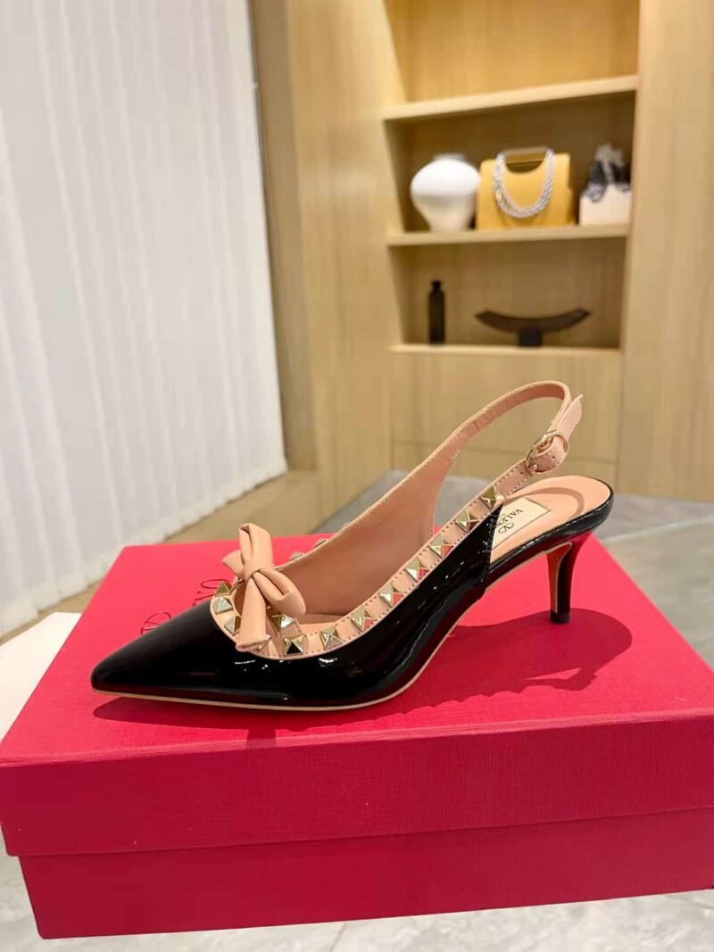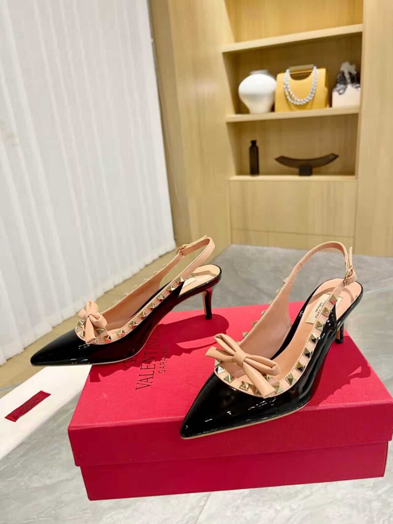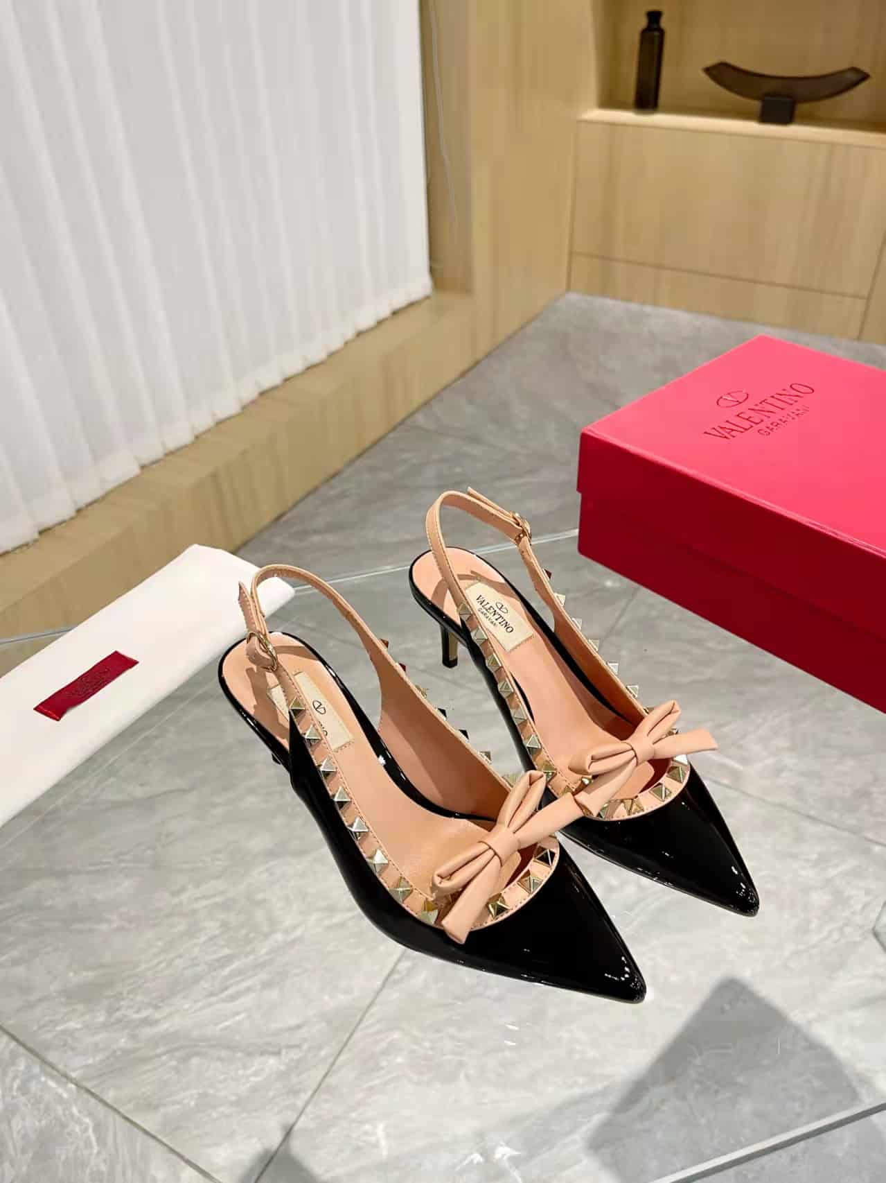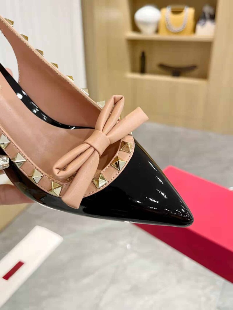 - Valentino Garavani Rockstud Bow patent leather slingback pump