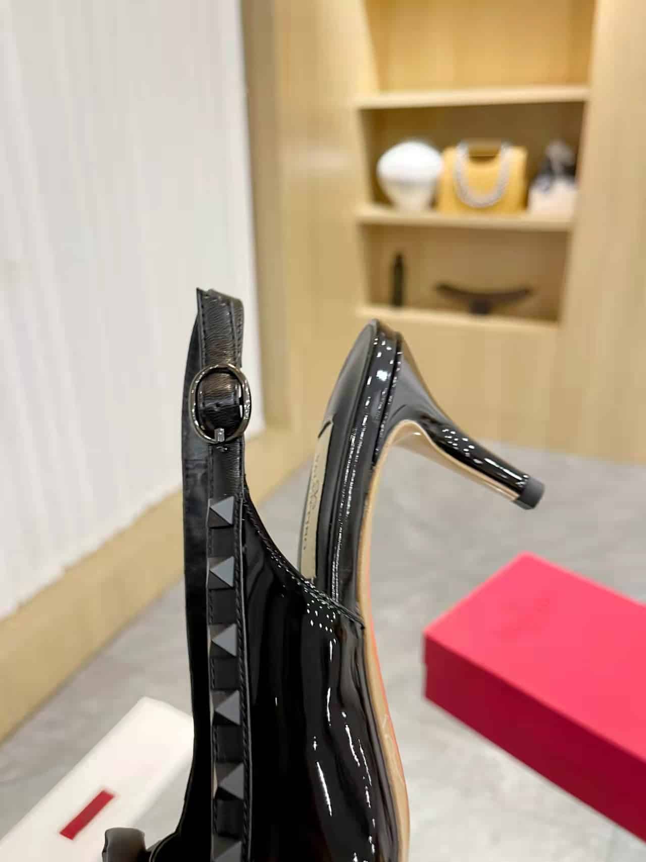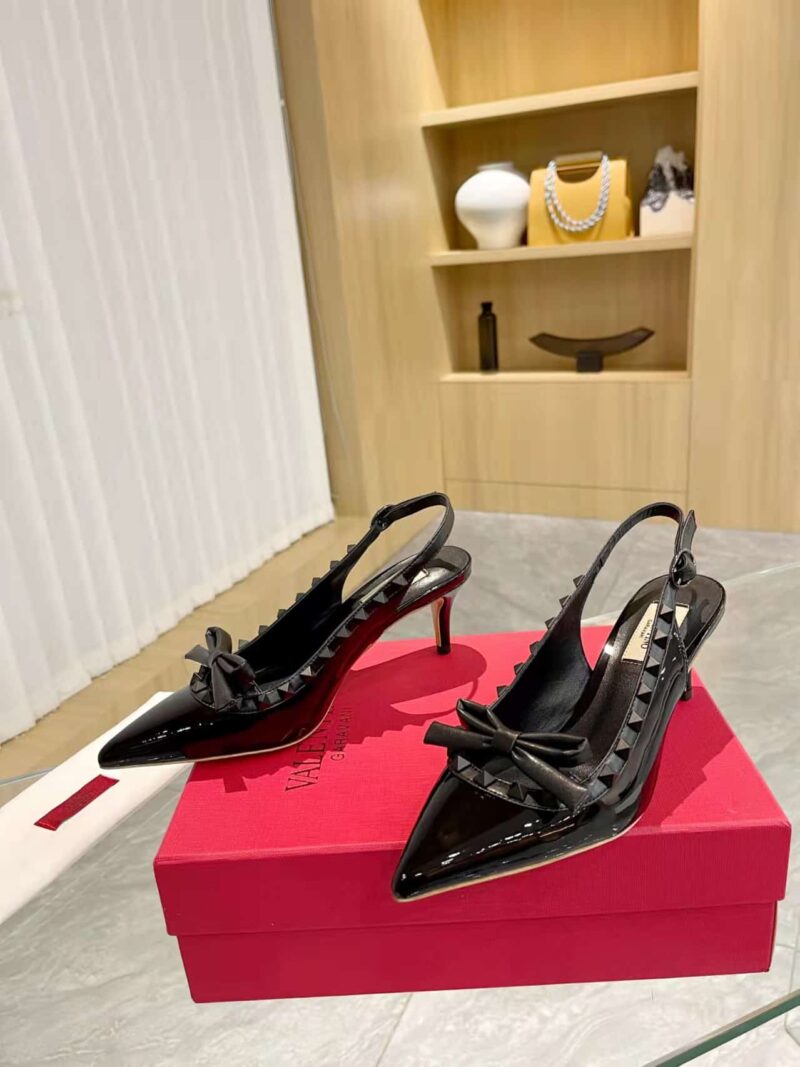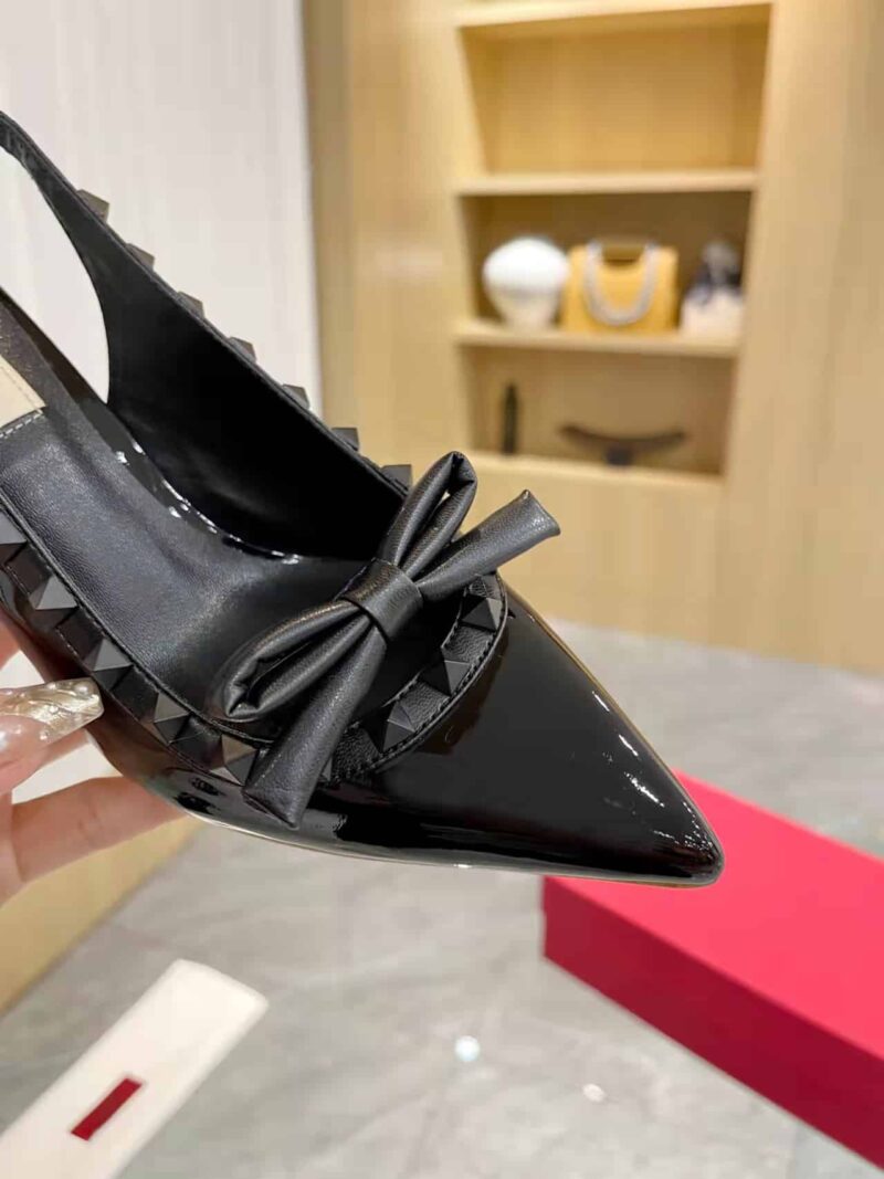 VALENTINO ROCKSTUD BOW SLINGBACK PUMP IN PATENT LEATHER WITH MATCHING STUDS BLACK 4W2S0IB8IXH 0NO