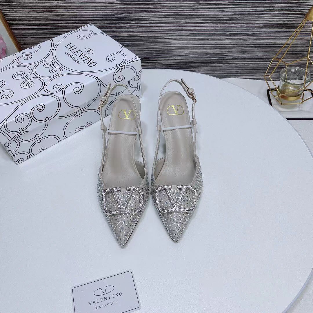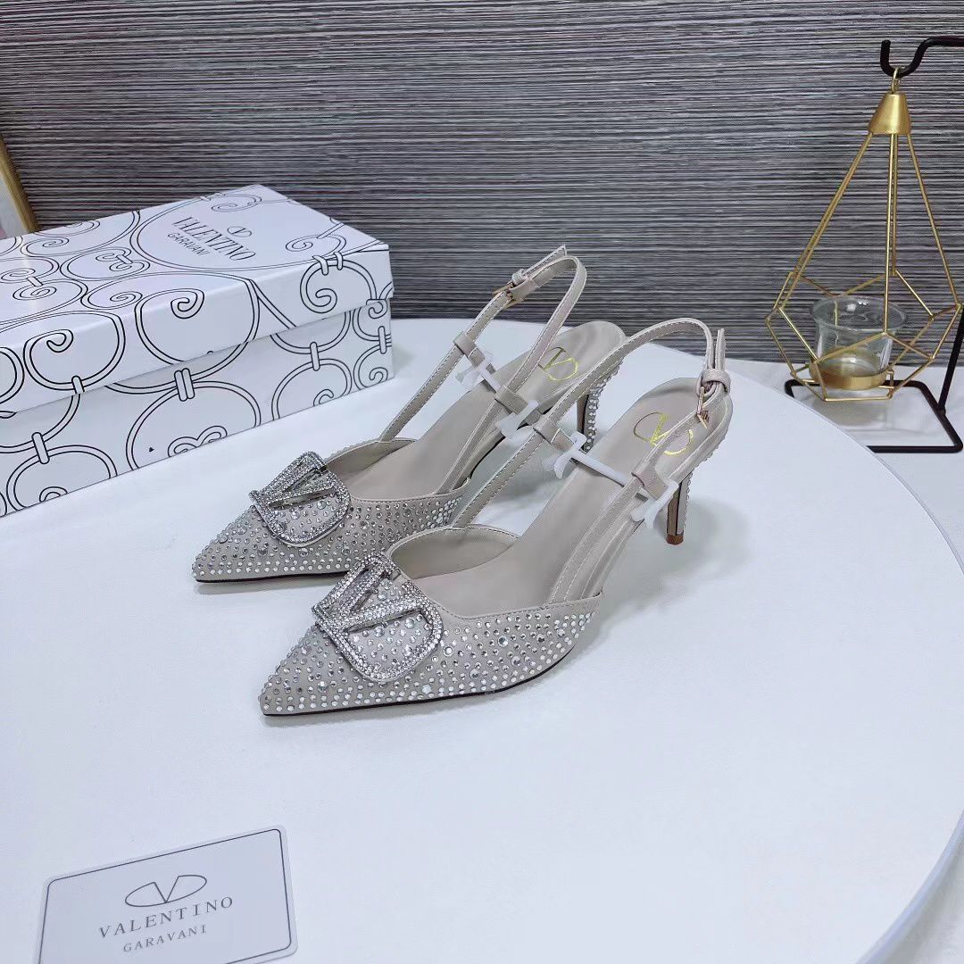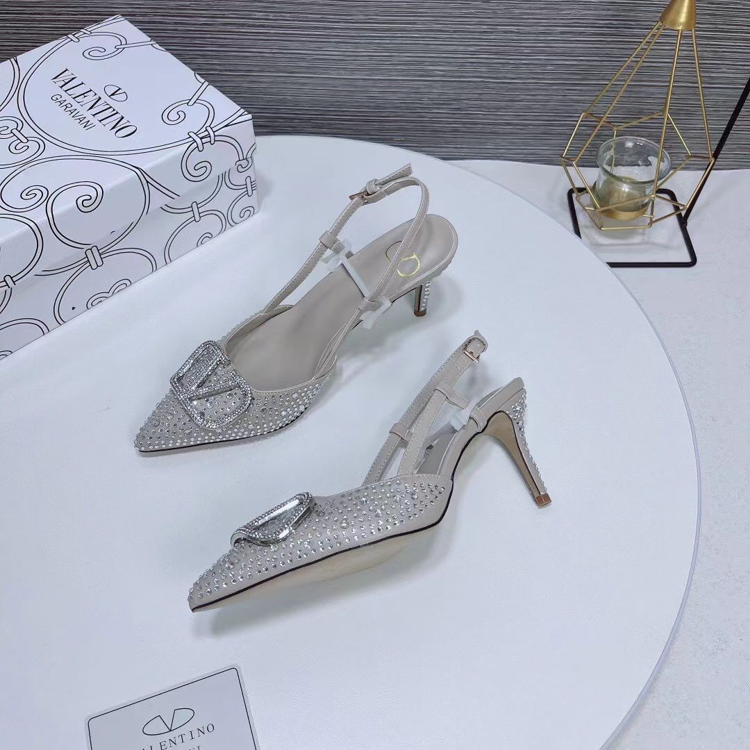 VALENTINO VLOGO SIGNATURE BACK STRAP CRYSTAL HIGH HEELS WHITE