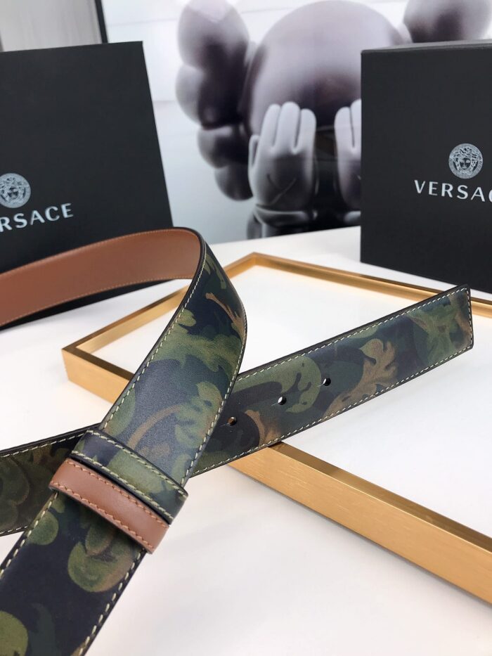 VERSACE LA MEDUSA LEATHER KHAKI SILVER METAL 4CM